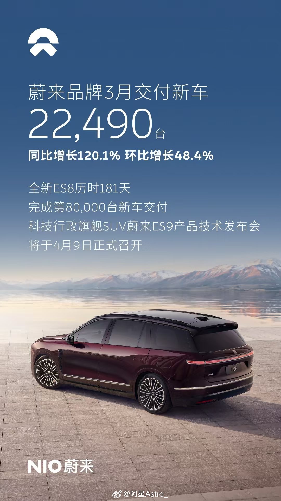 3月交付35486台、同比暴涨136%,一季度交付83465台超额完成指引上限,蔚来这份全线大涨的成绩单,正是长期战略价值全面兑现的拐点,市场对蔚来的长期低估,该彻底修正了。 三大品牌全价格带同步发力,彻底打破过往刻板偏见:蔚来主品牌交付22490台、同比增120.1%,全新ES8连续3个月包揽大型SUV全品类销量冠军;乐道、萤火虫双品牌环比均翻倍增长,分别站稳主流家用与10万级高端小车赛道,全市场覆盖的护城河已然成型。 “得大车得天下”的战略定力,不仅夯实了蔚来在高端纯电市场的统治力,更兑现了高质量增长的盈利闭环。2025年Q4蔚来首次实现季度盈利,现金储备增至459亿元,彻底撕掉“烧钱换规模”的标签,增长的可持续性与盈利确定性,直接重构了估值的底层逻辑。 技术全价位段体系化赋能、供应链与运营全链条体系能力跃升,叠加芯片融资等多重利好,蔚来经营已正式步入良性循环。十一年长期战略投入转化的核心竞争力,正在持续释放,蔚来的价值重估,才刚刚开始。蔚来3月交付量蔚来价值重估蔚来ES9蔚来