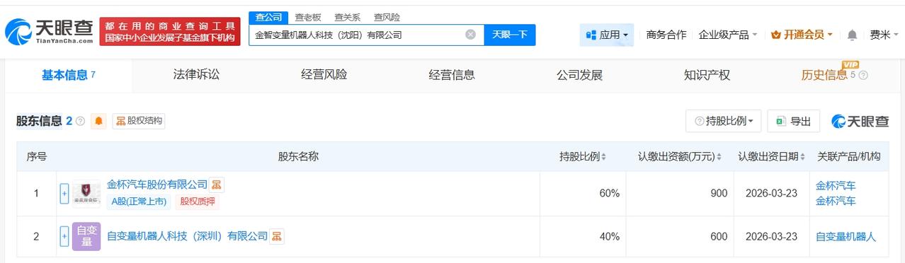 金杯汽车、自变量机器人成立合资公司 注册资本1500万 天眼查App显示,近日,金智变量机器人科技(沈阳)有限公司成立,法定代表人为丁侃,注册资本1500万人民币,经营范围包括智能机器人的研发、智能机器人销售、工业机器人制造等,由金杯汽车(600609)、自变量机器人科技(深圳)有限公司共同持股。 天眼查信息: