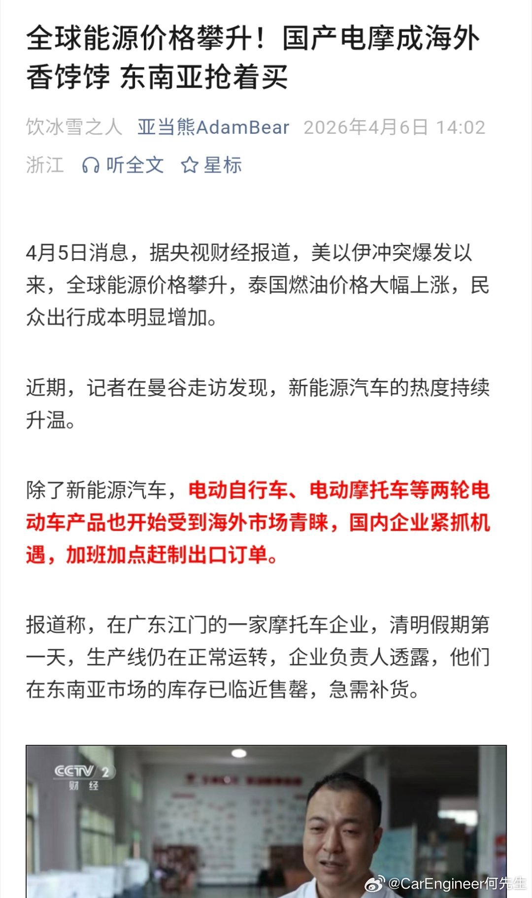 对于中国新能源汽车来说,今年也是个机会,电车肯定在海外卖的很好,建议重心往海外靠靠。