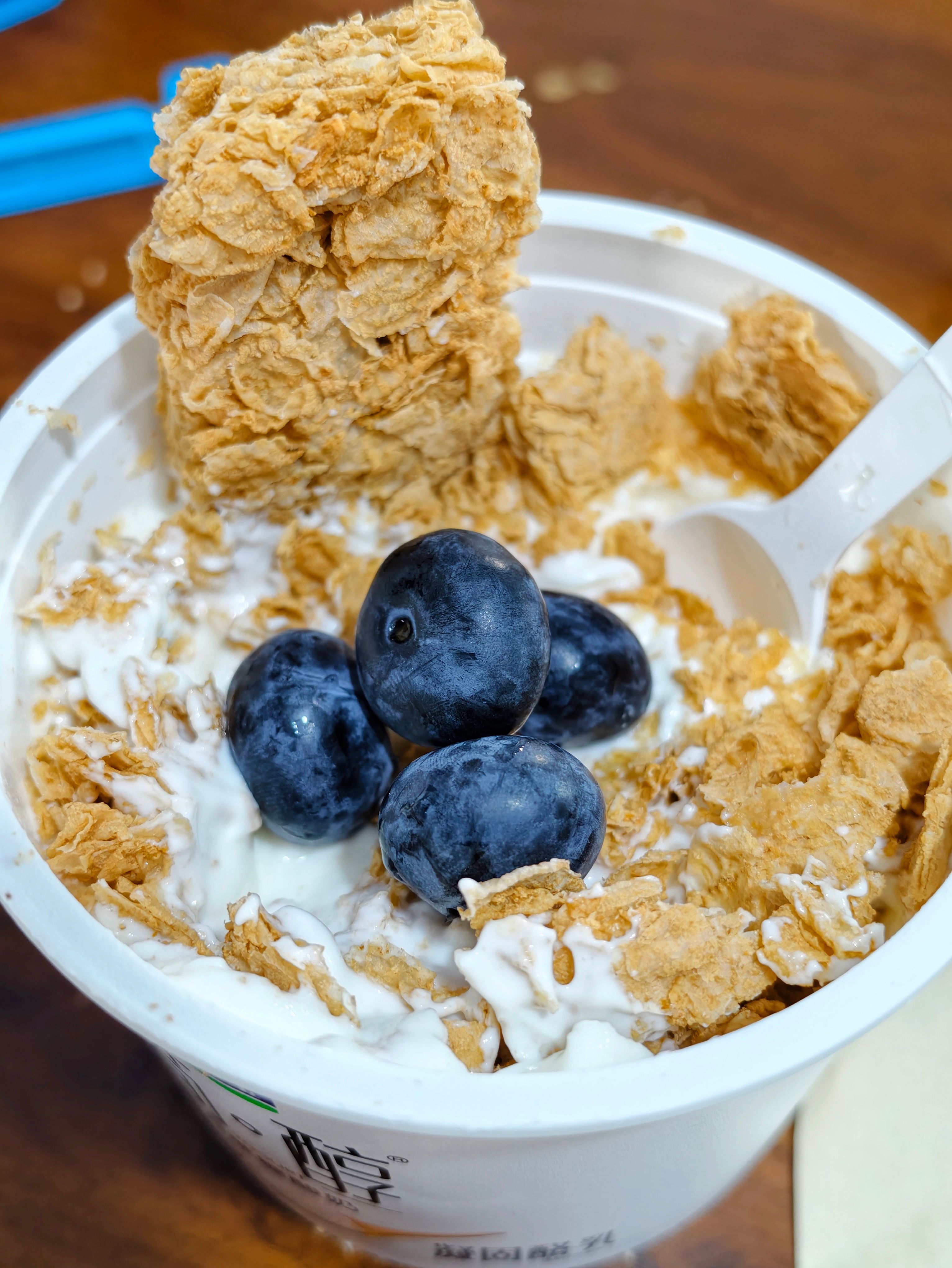 今晚的晚饭:无糖酸奶➕无糖燕麦片➕蓝莓