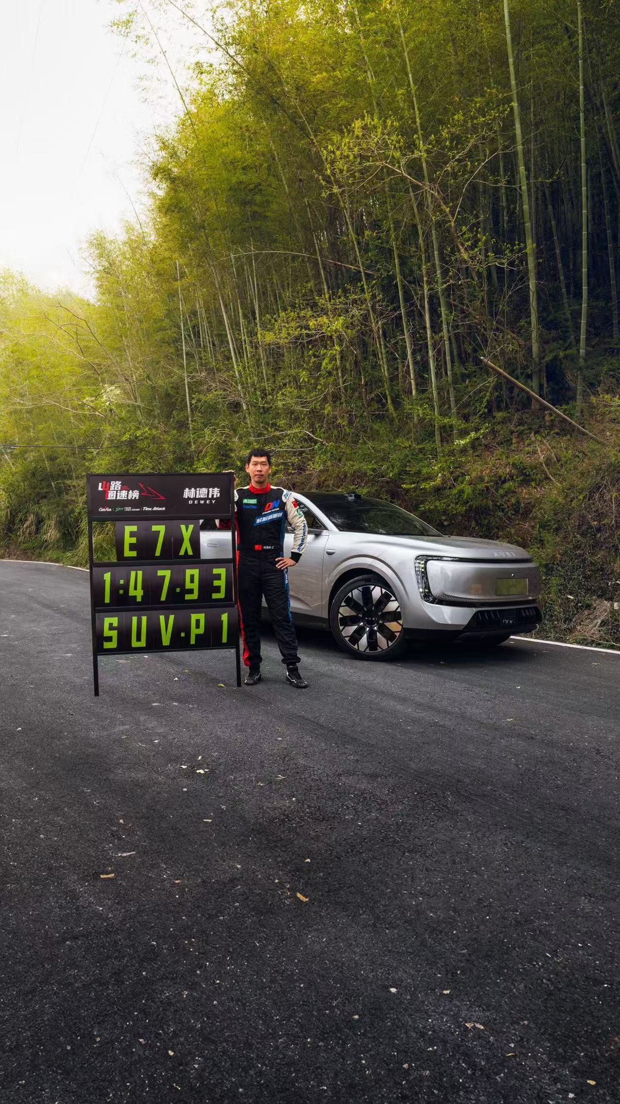 佰骏山赛道是亚洲唯一一条山脊赛道,路况出了名的复杂,连续转弯,越野柏油混合赛道,超大陡坡s弯,奥迪E7X直接拿下最速SUV山路之王,说的出做的到,前几天的喊话没白喊,奥迪好样的!