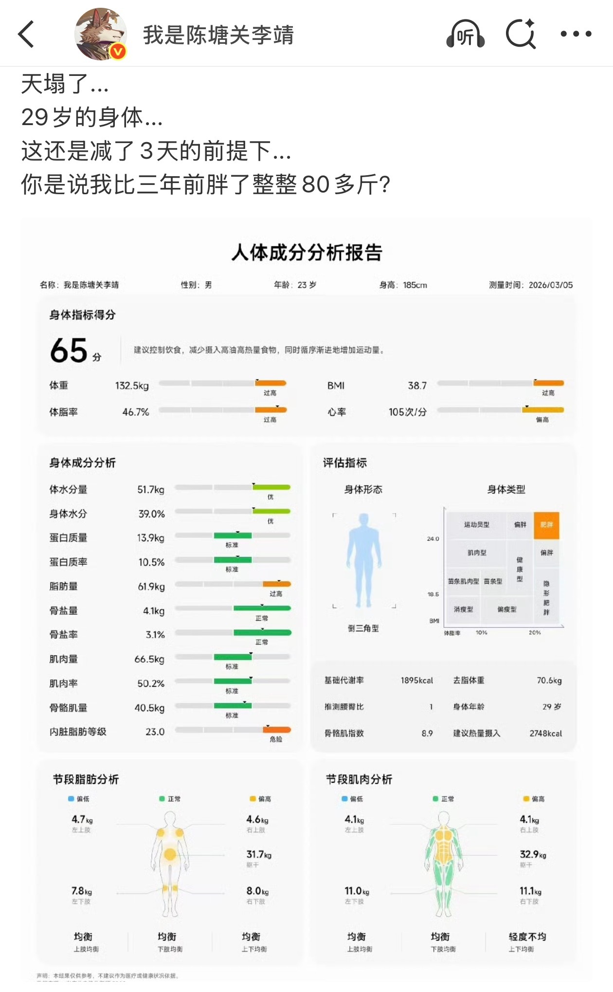 刘文浩的减肥计划 来了来了,减肥一个月的总结来了!汇报一下3月5日上称后到4月7