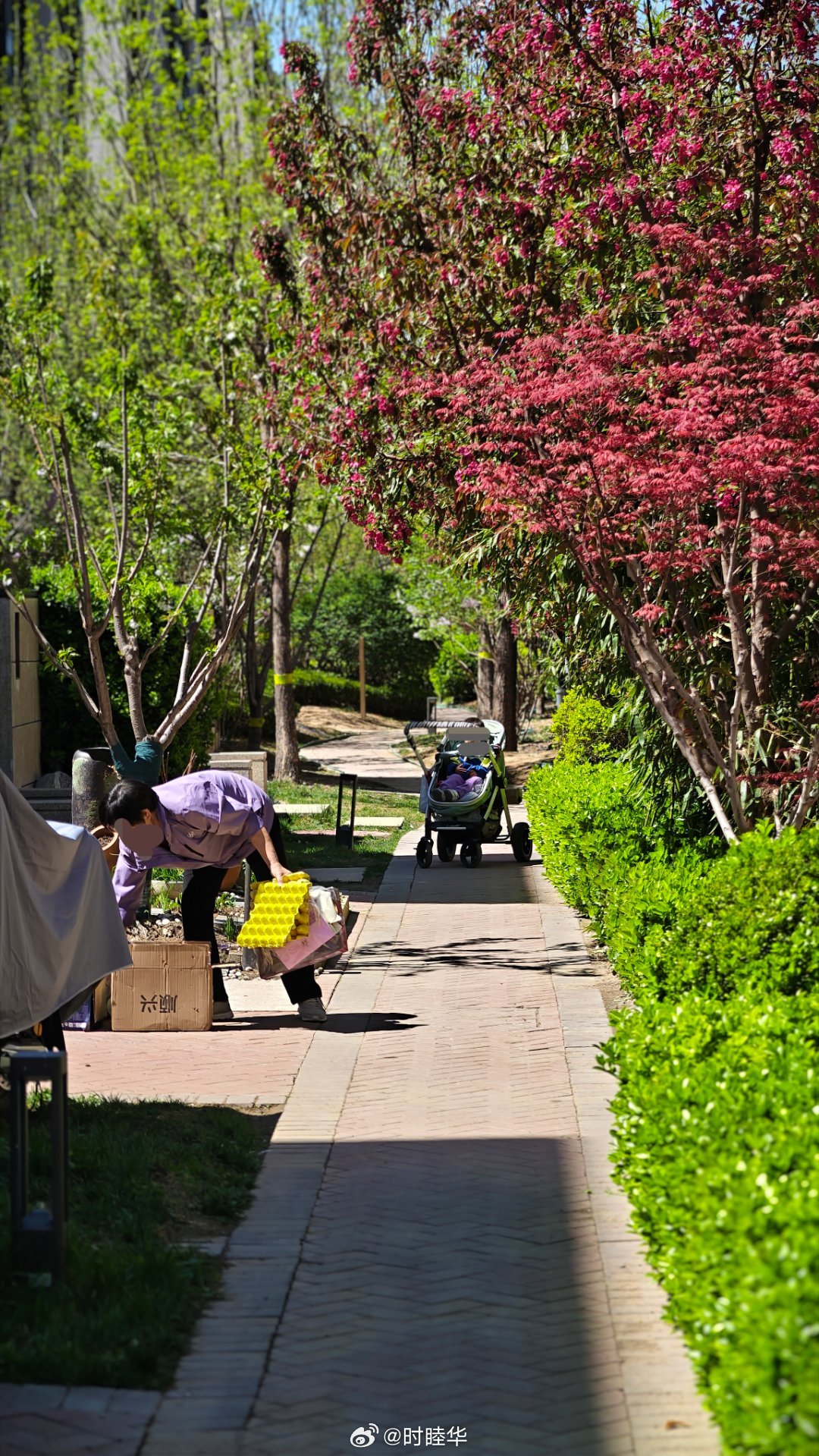 在小区里看到一个阿姨推着一个婴儿车,带着一个小baby,她把婴儿车放在那,然后自