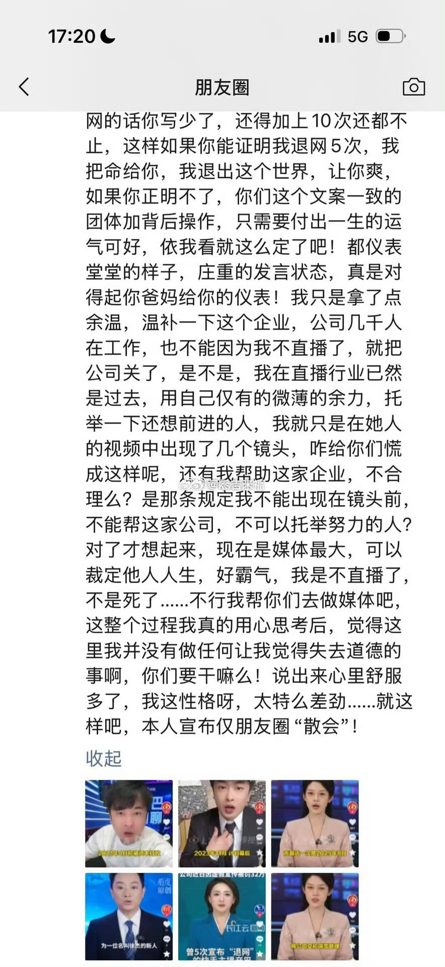 辛巴称肺功能相当于95岁老人水平 辛巴发朋友圈回应五次退网:我就只是在她人的视频中出现了几个镜头,咋给你们慌成这样呢,还有我帮助这家企业,不合理么?是那条规定我不能出现在镜头前,不能帮这家公司,不可以托举努力的人?对了才想起来,现在是媒体最大,可以裁定他人人生,好霸气,我是不直播了,不是死了......五次退网的辛巴再收徒