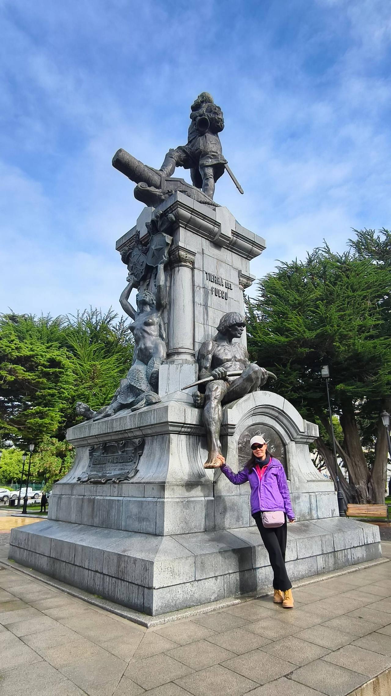 智利蓬塔阿雷纳斯,世界最南城市之一,与南极隔麦哲伦海峡相望,如果飞南极,就是从这里飞。500年前麦哲伦就是从这里进入太平洋的,虽然他在旅途的第二年死于部落冲突,但他的船队最终完成了人类历史上首次环球旅行。 小镇人不多,逛着很舒服,海鲜也很便宜,剥好的帝王蟹合人民币不到200元,当地的congrio鱼也很好吃,炖了7个小时的巴塔哥尼亚小羊腿超级嫩。 武器广场上伫立着麦哲伦纪念碑,基座上是当地土著巴塔哥恩族人的雕像,他的大脚被摸得锃亮,据说要从蓬塔出海的人都会来摸,护佑平安。我也摸摸脚,这次不去南极,但去看企鹅~