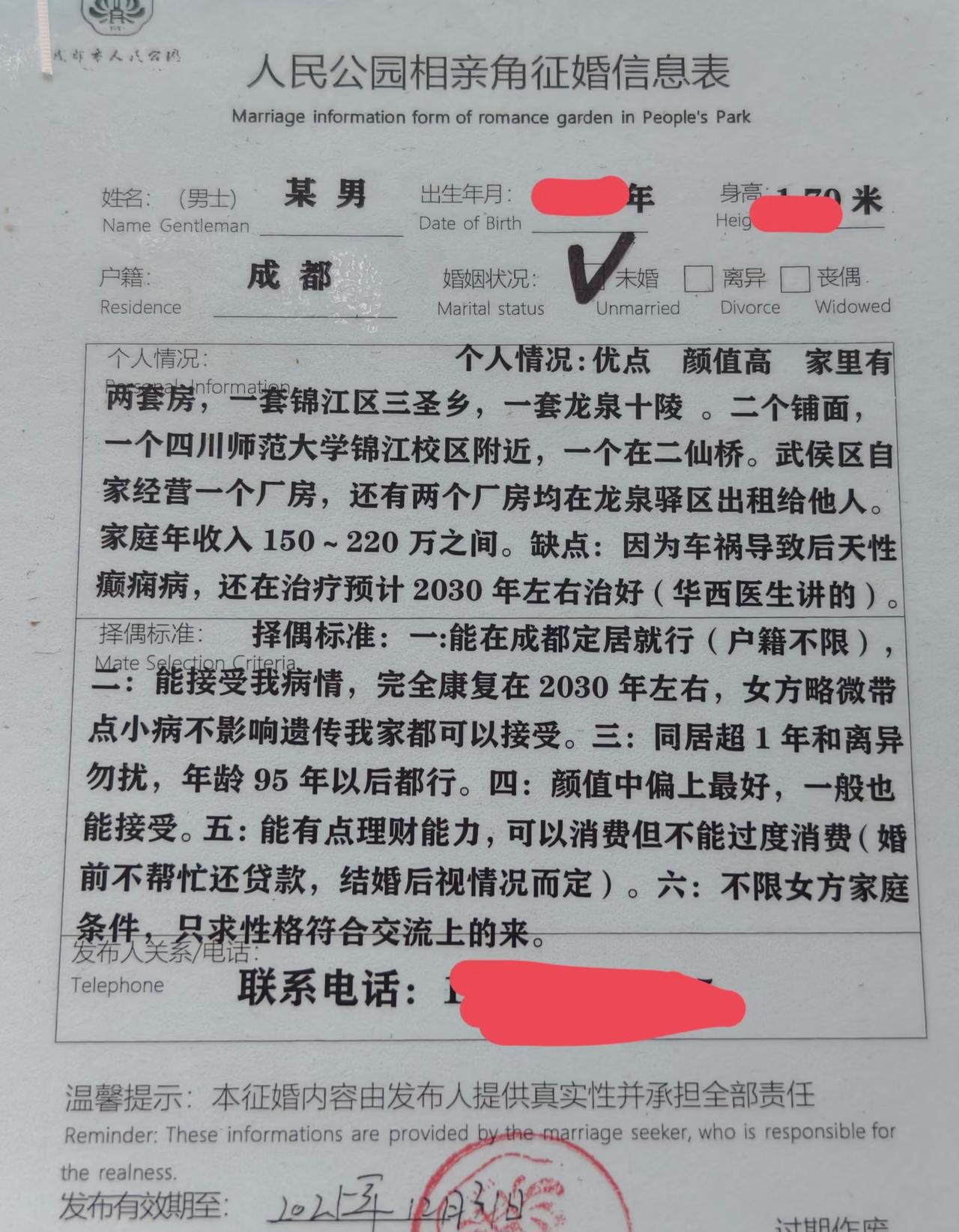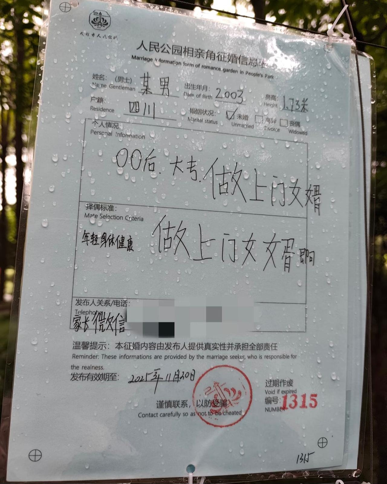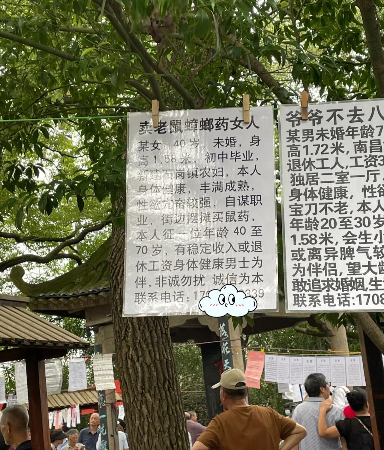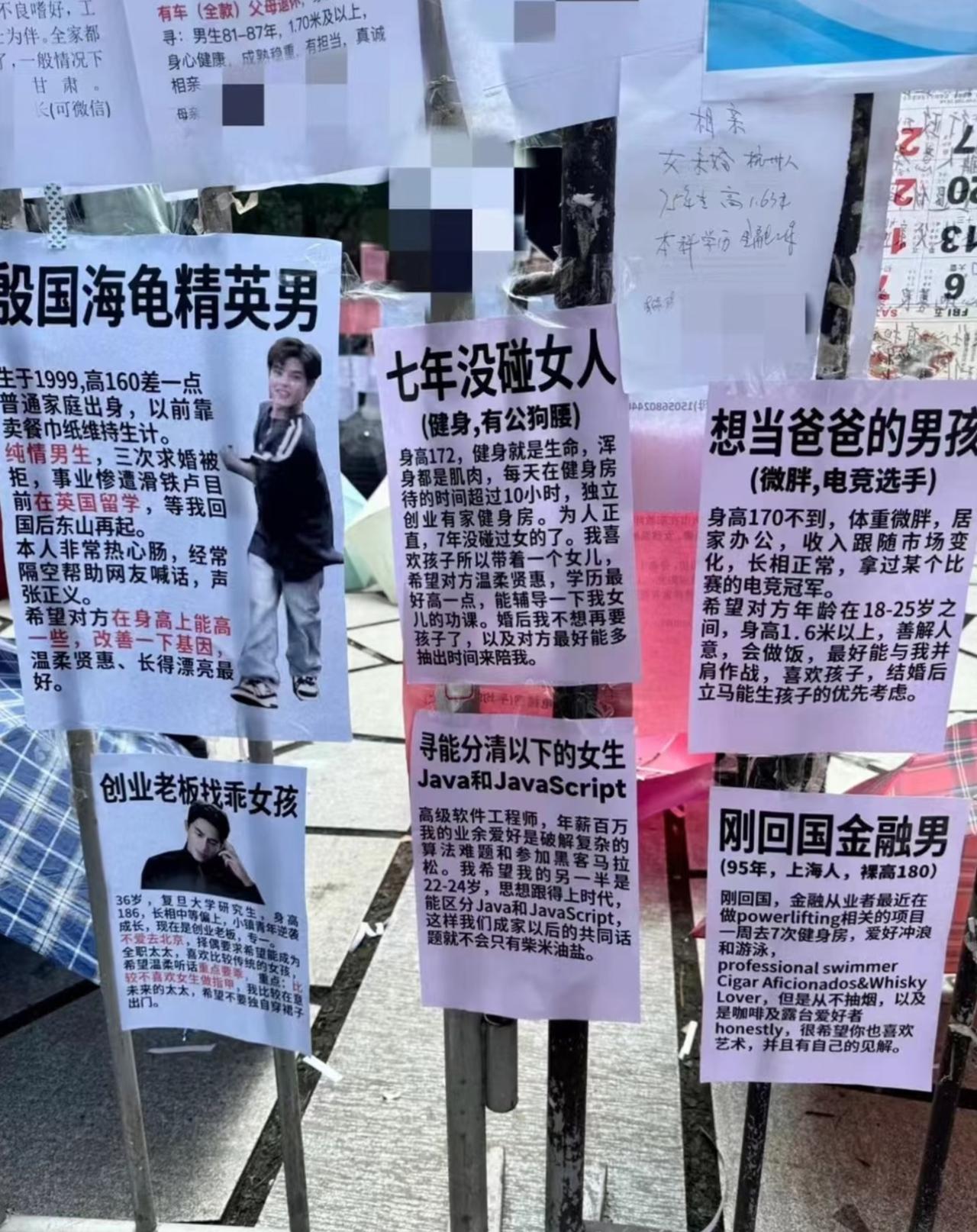 相亲角?这分明是人才角呀! 每次去公园溜达, 都喜欢去相亲角待一会儿。 没别的意思, 就是喜欢看那些征婚简介。 真的是卧虎藏龙, 各种炸裂极具抽象的内容, 只有你想不到就没有看不到的! 不过也挺好, 心情郁闷的时候去溜达看看, 比在家生闷气好多啦! 相亲角 征婚相亲 人民公园 大龄相亲角 大龄相亲角 婚恋相亲角 中老年人相亲角 00后相亲角 恋爱相亲角 相亲处