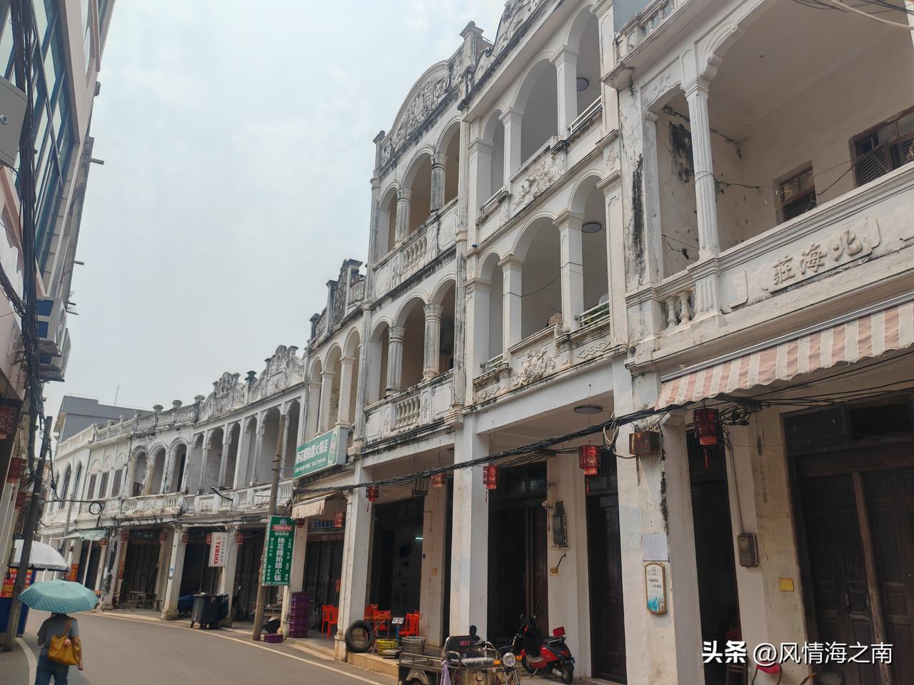 骑楼是当年下南洋的华侨赚了钱后回到家乡修建的南洋风格建筑,楼上或后院住人,楼下铺面经商,走在连廊里可以遮阳避雨,非常适宜海南的天气。