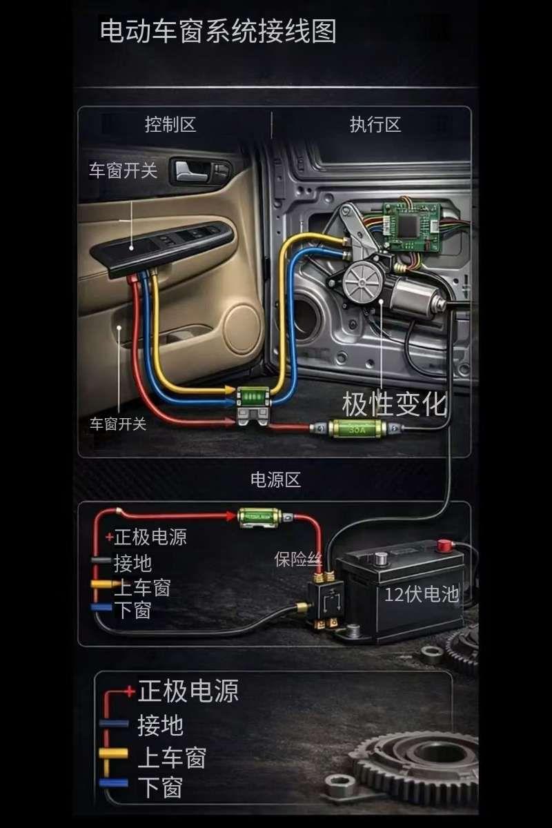 如果你的电动车窗失灵了,车门里面其实是这么回事 👇
