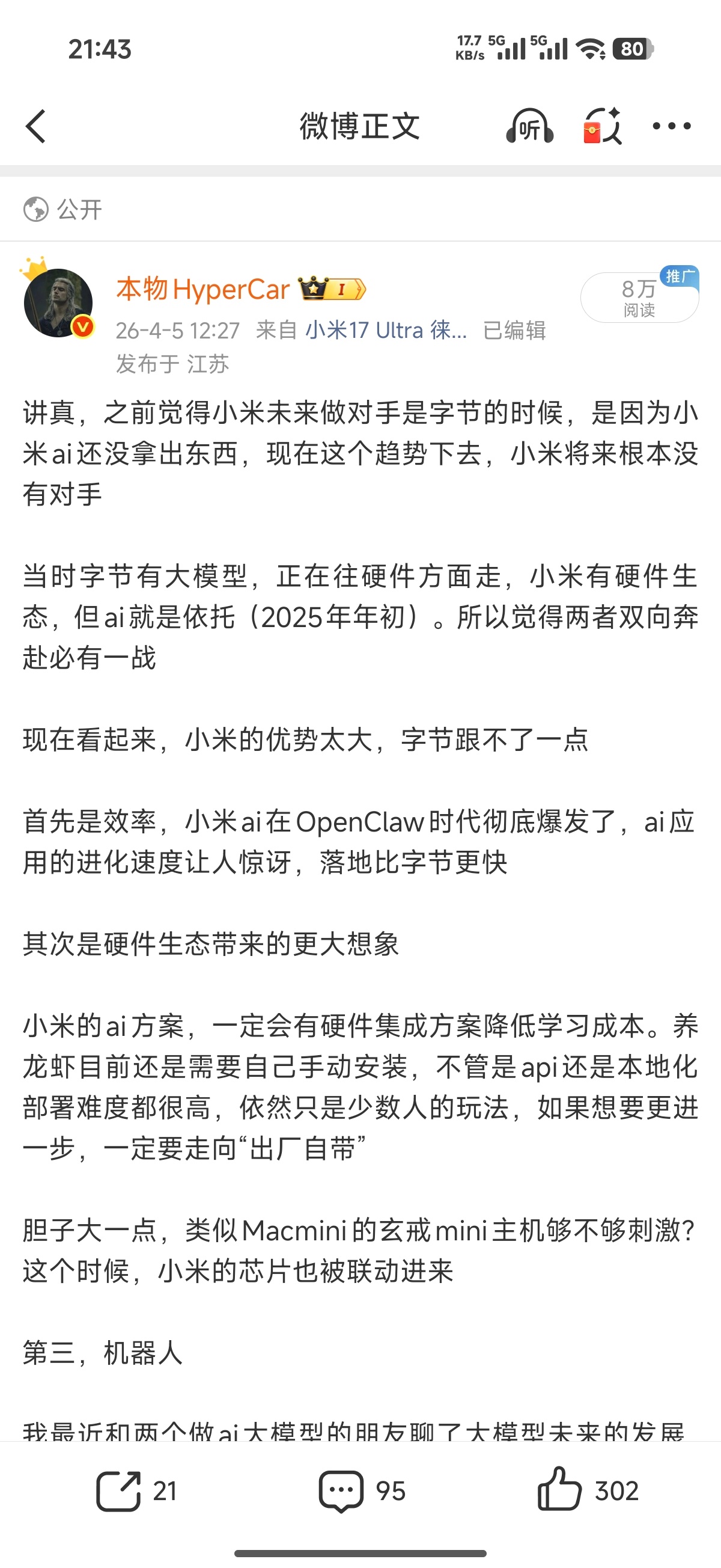 你夸一夸小米,0拉踩内容他们都能应激,如果心里真的觉得自己随便赢会应激吗?还羡慕吗