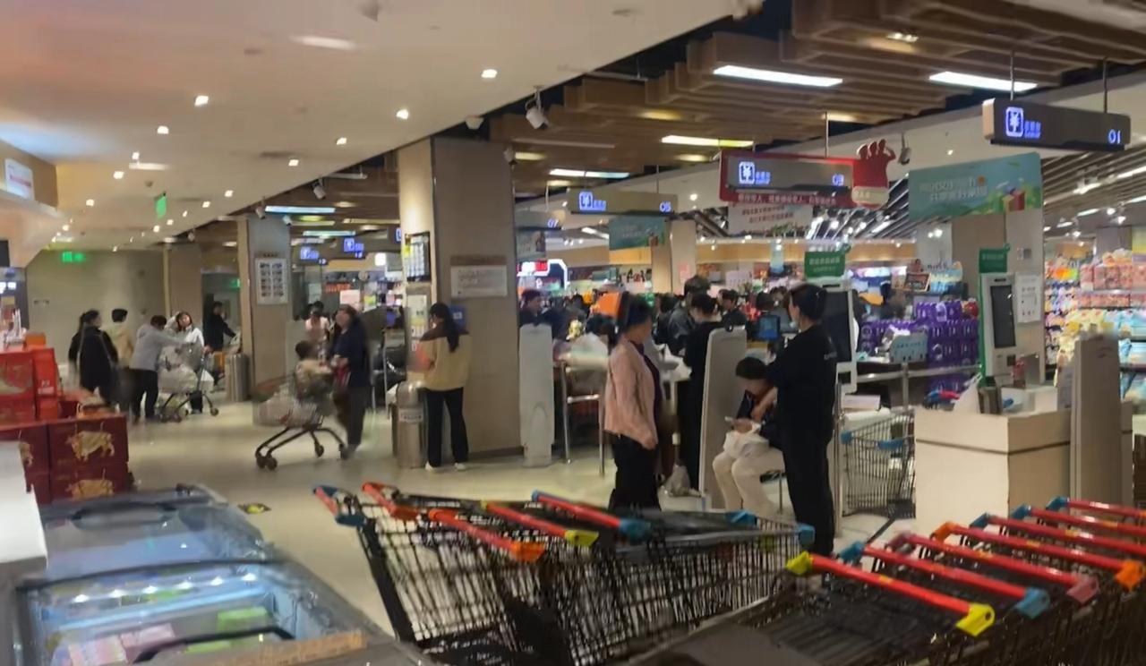 都晚上九点了,许昌禹州一峰超市热闹非凡,货架几乎清理一空!