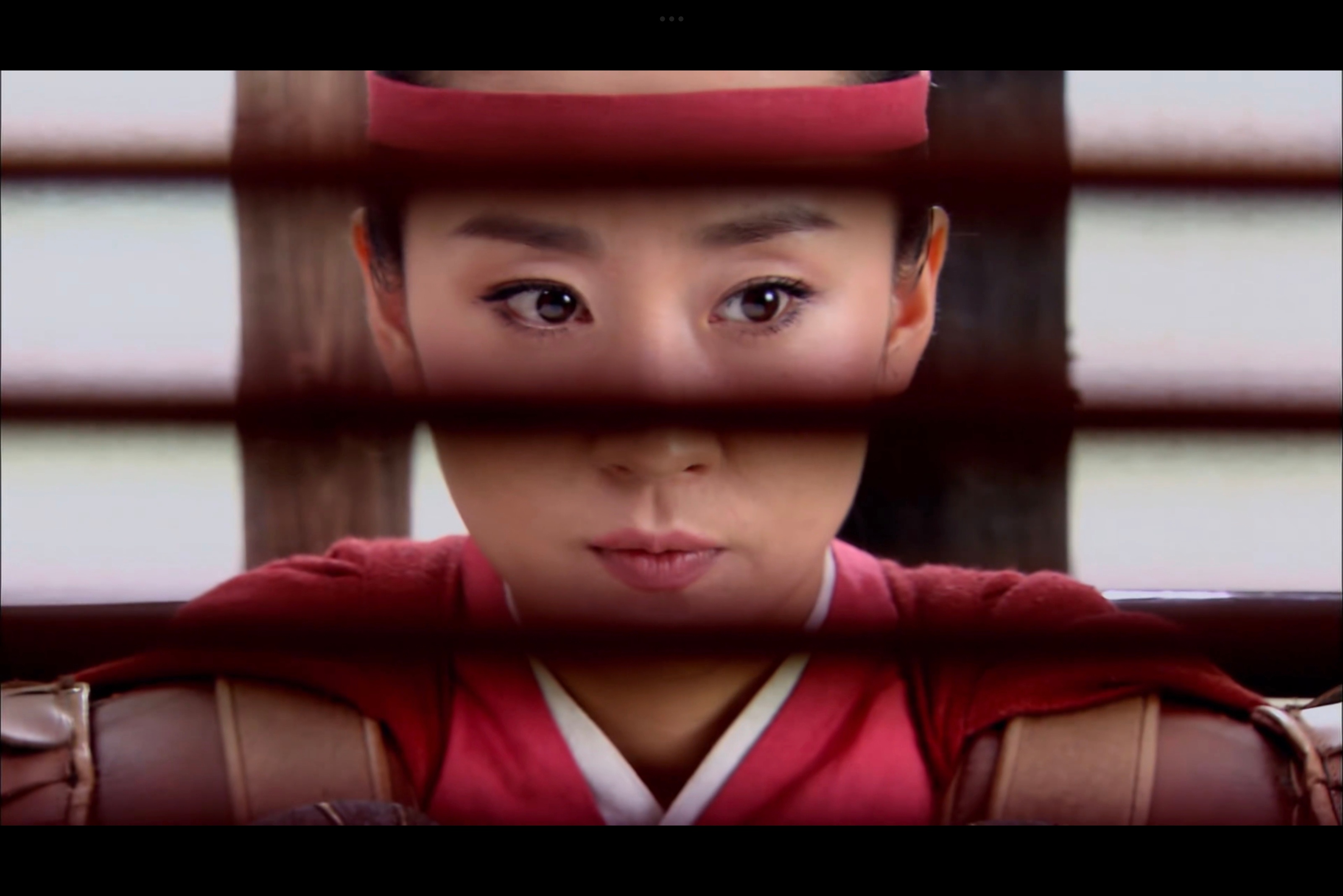 小时候非常不能理解怎么就有木栏在前面碍事,重温才觉得拍得太有意境。穆桂英和婶婶姑姑交手,最重要的是出其不意,观众都看不清双方将领的全貌,也无法猜测他们是否有足够的把握下一步怎么走,自然心急。两军对阵,就在这一张小小的木栏后面运筹帷幄,偶尔能在空隙之间看到穆桂英身上细长的抹额、深深凹陷的眼窝、赤色的盔甲、除去一切饰品后空空的耳洞以及偶尔翕动的嘴唇……古早剧就是这样诚意十足,从哪里看都是细节,就连睫毛都刷得十分有年代特色,妆容轻薄而贴脸,全然就是为了演员本身的脸而存在,自然到可以随意沉浸。半遮半掩之下,美貌和谋略反而一览无余了。穆桂英挂帅2012