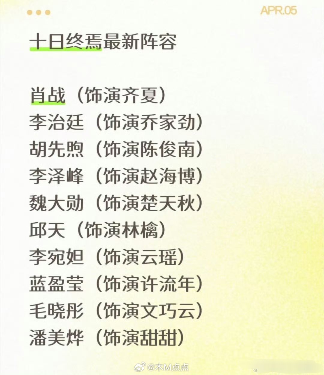 《十日终焉》最新阵容🈶 魏大勋粉丝应该可开心了吧?第1次有了进组rs这么看整体还可以,都是有姓名的演员 肖战魏大勋十日终焉前期是对手,十日终焉最新阵容,魏大勋青岛进组十日终焉
