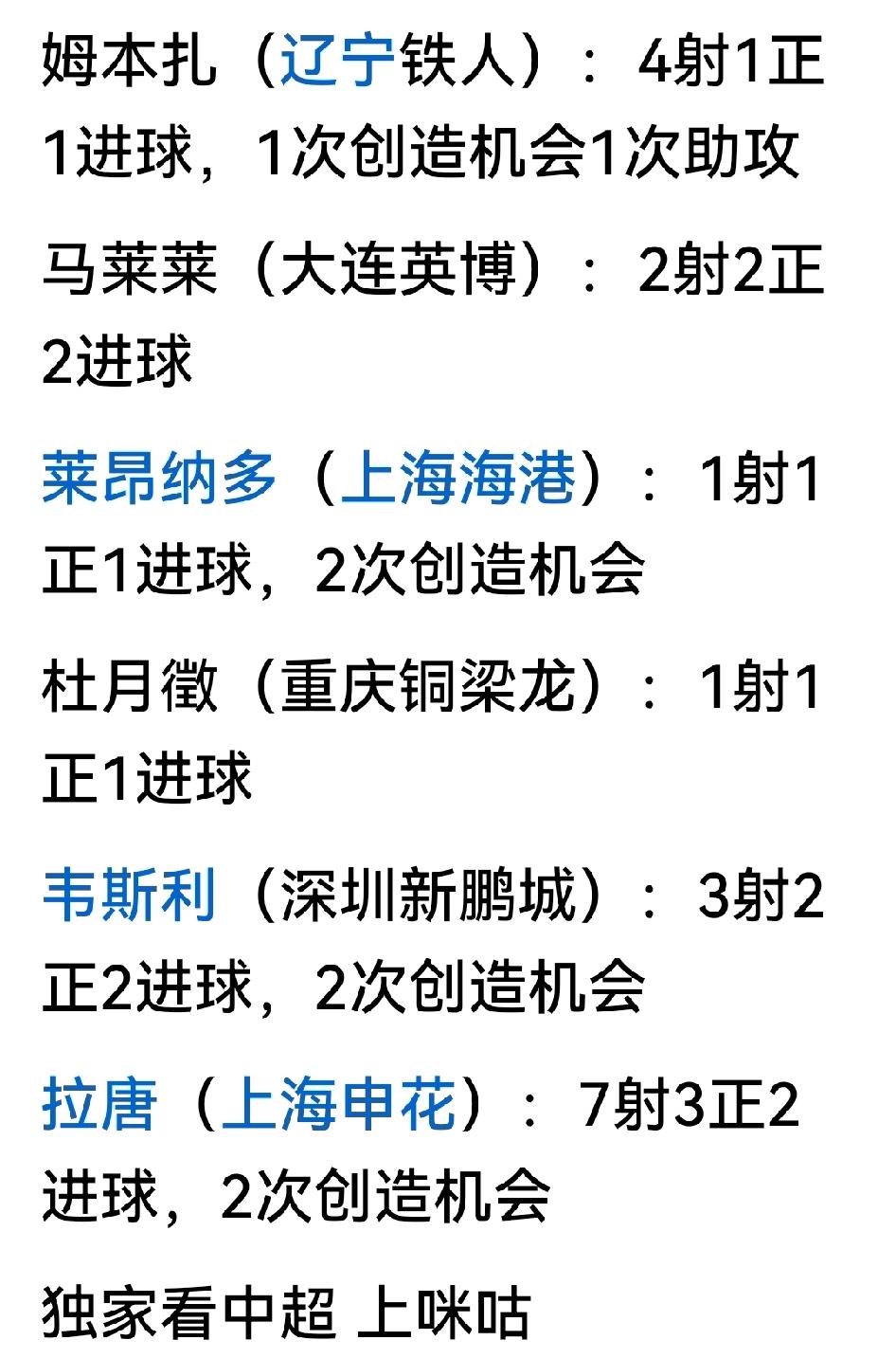 拉唐:7射3正2进球,帮申花实现对天津队的逆袭。