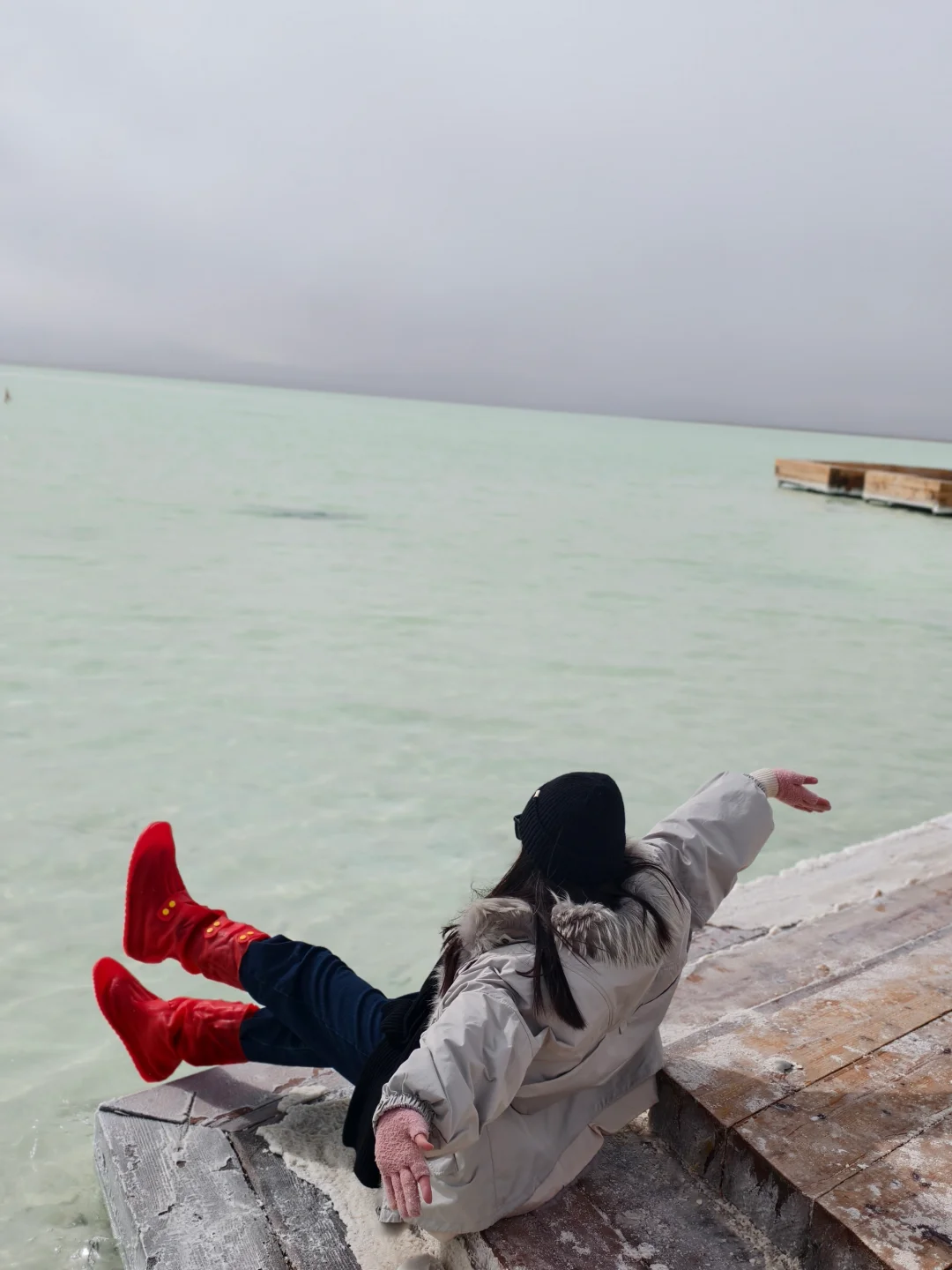 我们到达的是黑马湖,恩~只给了半小时拍照。只有一湖的🧊块。▶️去往盐湖的路上有一家餐食,蛋炒饭美味哦🍚