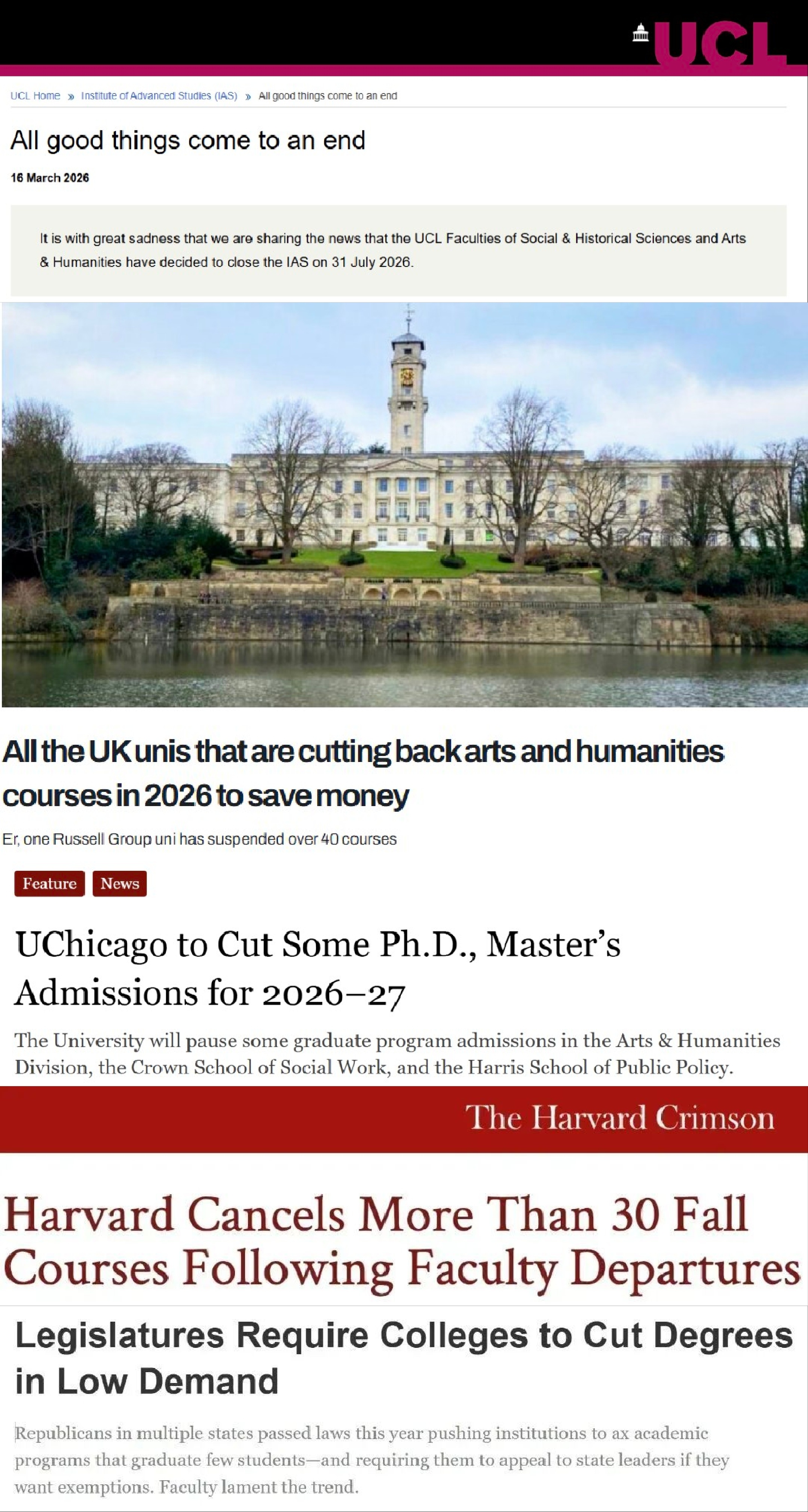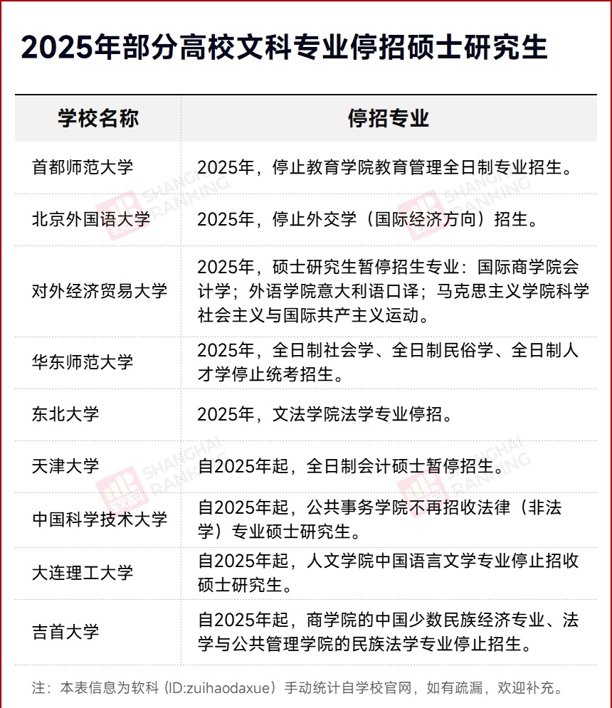 近年来,英国多所高校因财务压力大幅缩减人文学科,诺丁汉大学暂停四十余门文科专业招生,布里斯托大学推行自愿离职计划以压缩人文领域开支。美国数十所高校已暂停上百个人文社科硕博项目,芝加哥大学计划合并文科院系,哈佛大学取消数十门文科课程。满谈教育