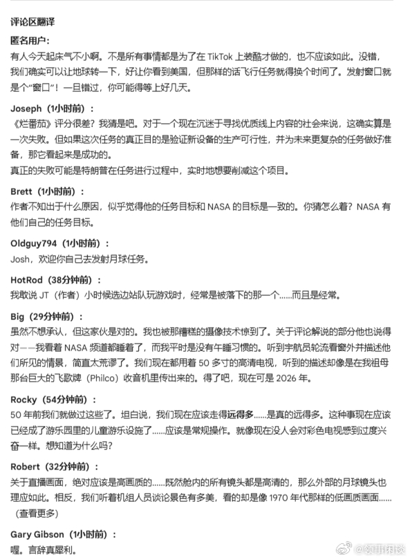美国宇航局本应率先剪辑这段视频并在社交媒体上分享。这本应是他们市场团队的优先事项。但事实并非如此。也许他们现在已经这么做了。顺便说一句,视频下的大部分评论都来自认为这段视频是伪造的人,因为美国宇航局是在4月1日启动这项任务的。