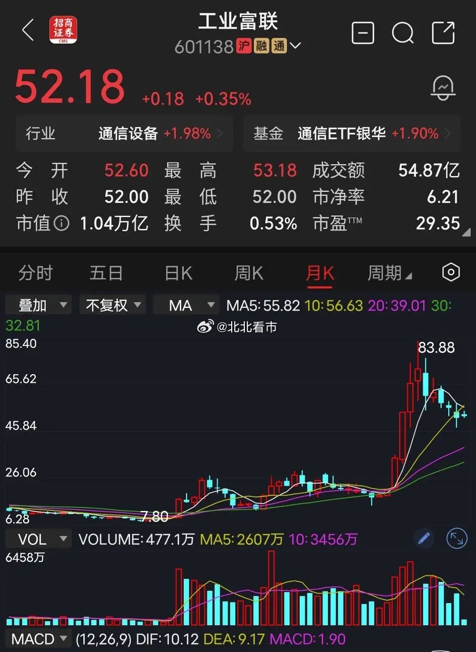 富士康在底部的时候,横盘整理了好几年。2025年借助人工智能、算力、AI 等概念,这一大波股价翻了十倍,操盘的主力赚得盆满钵满。为什么我每次评论它股价涨高了涨多了,风险极大,普通散户就不要去接盘当接盘侠了。然后很多人就会跳出来反对我,说它会涨到80涨到100?原因很简单,就是当初工业富联涨的时候,有些散户喜欢跟风,喜欢跟涨,主力一回调,然后被套住了,你唱衰他,他肯定不乐意了。
