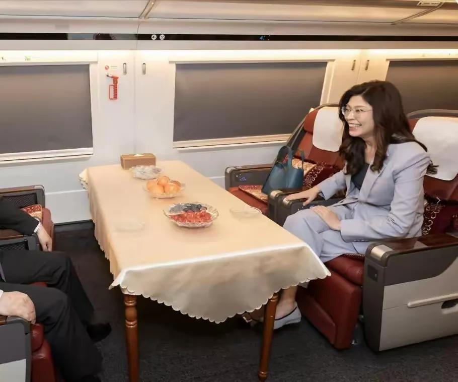青鸟们,睁大你们的眼睛好好瞧瞧,大陆高铁是有靠背的! 郑丽文今天下午从上海乘坐