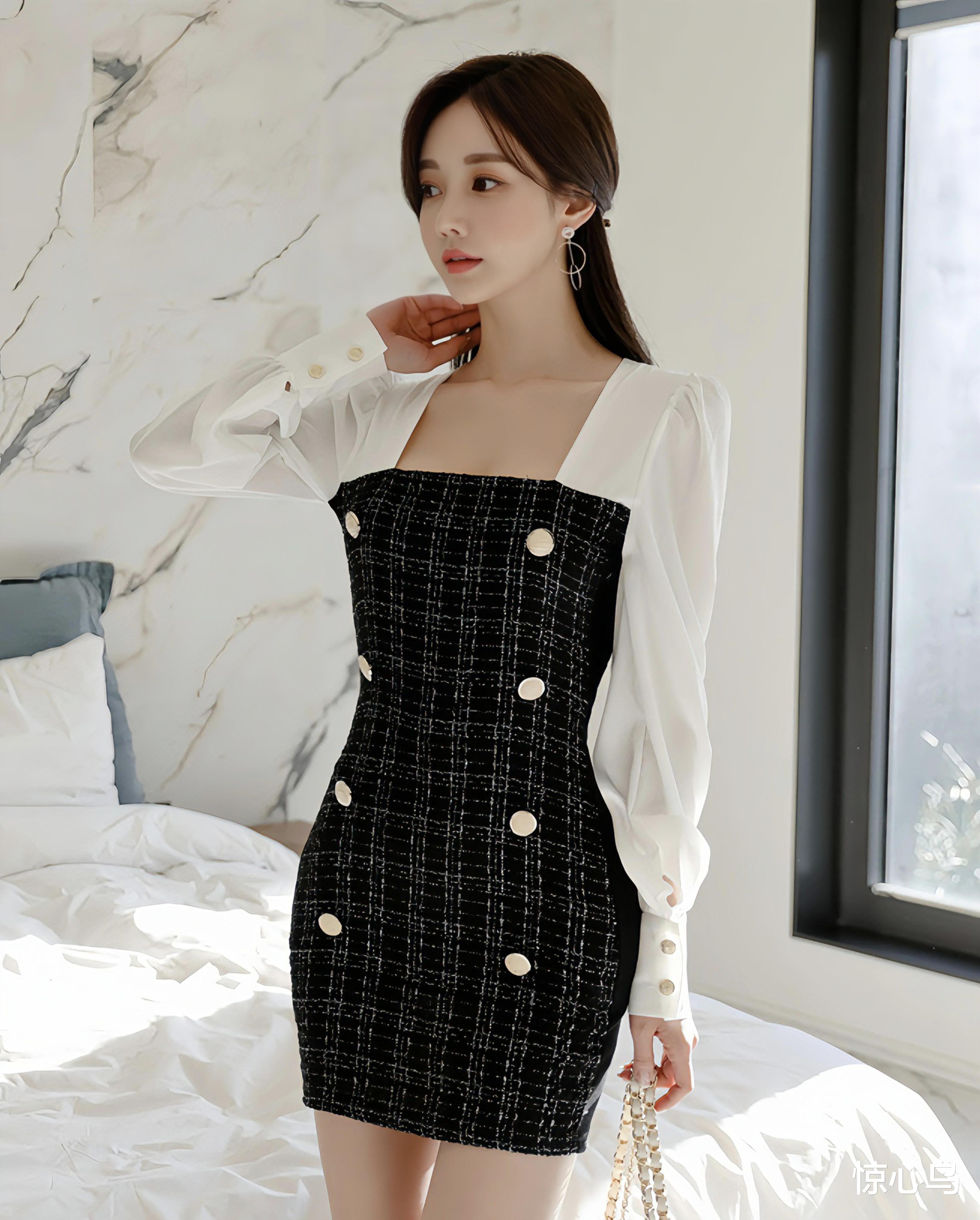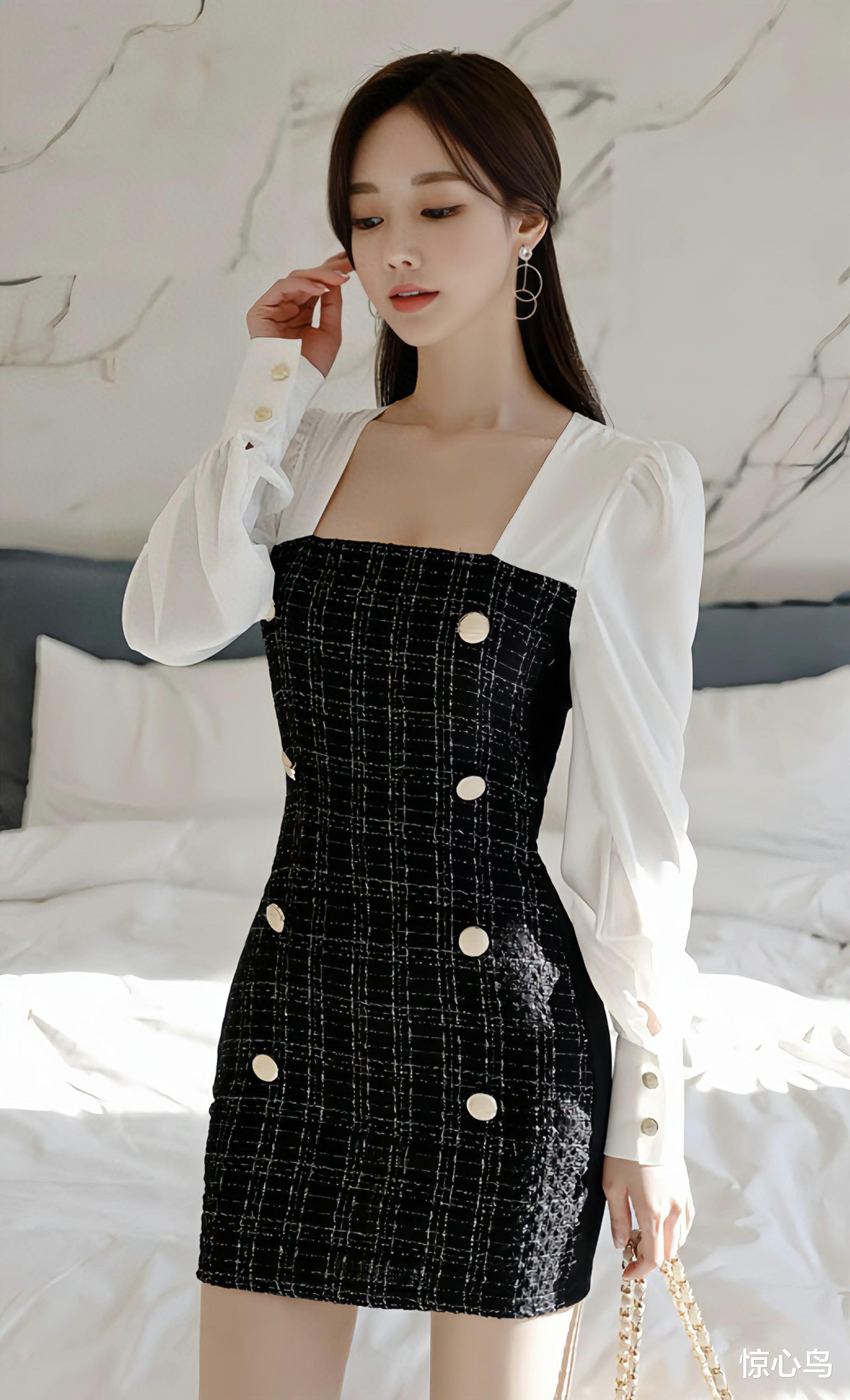 金罗裁袂曳清涟,蓝蕊凝香缀玉肩,眉描黛色云山外,眸光流动秋水前