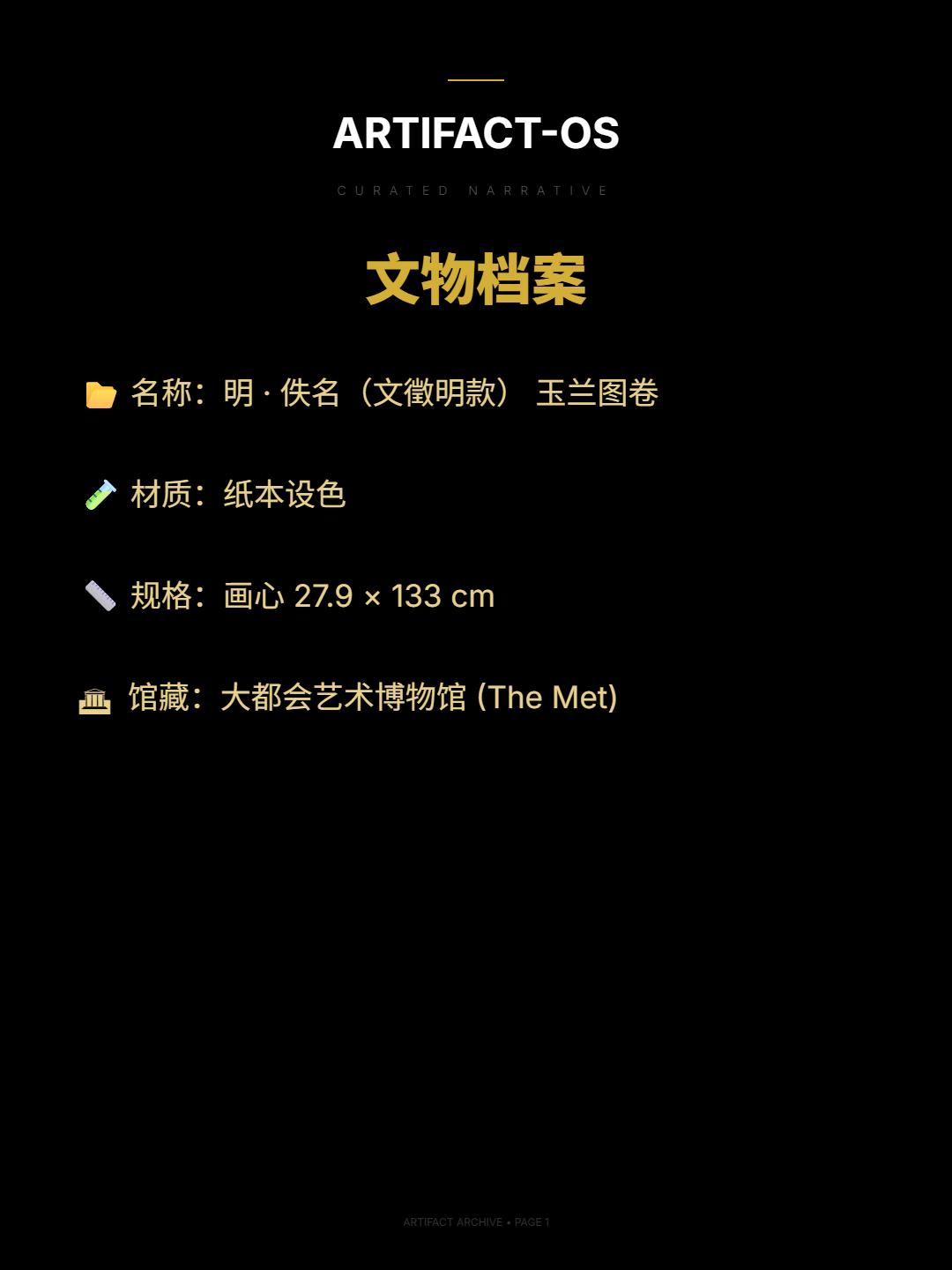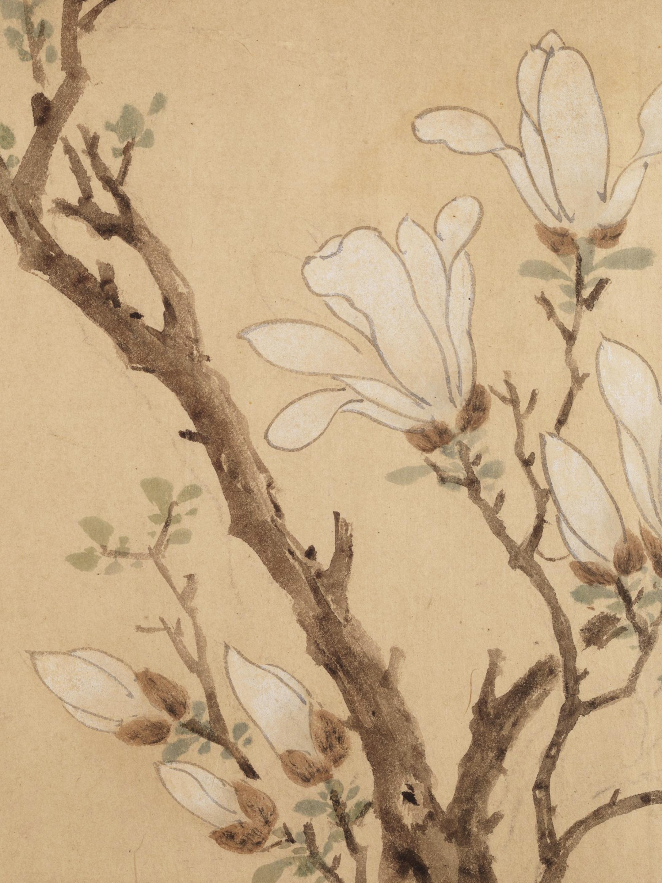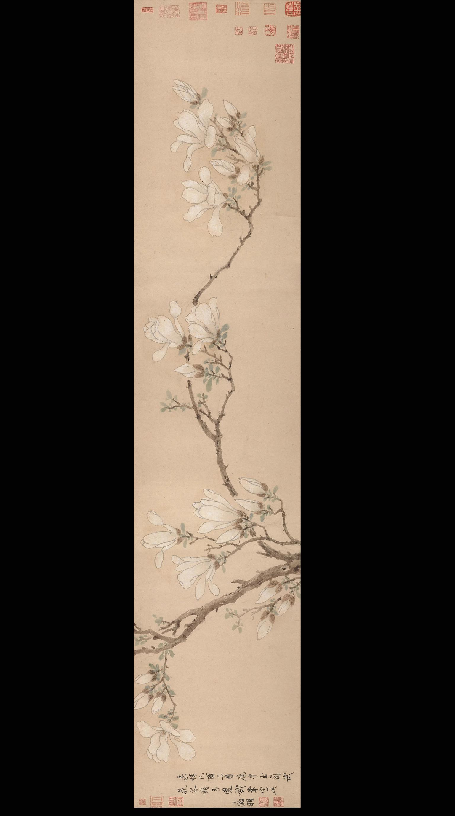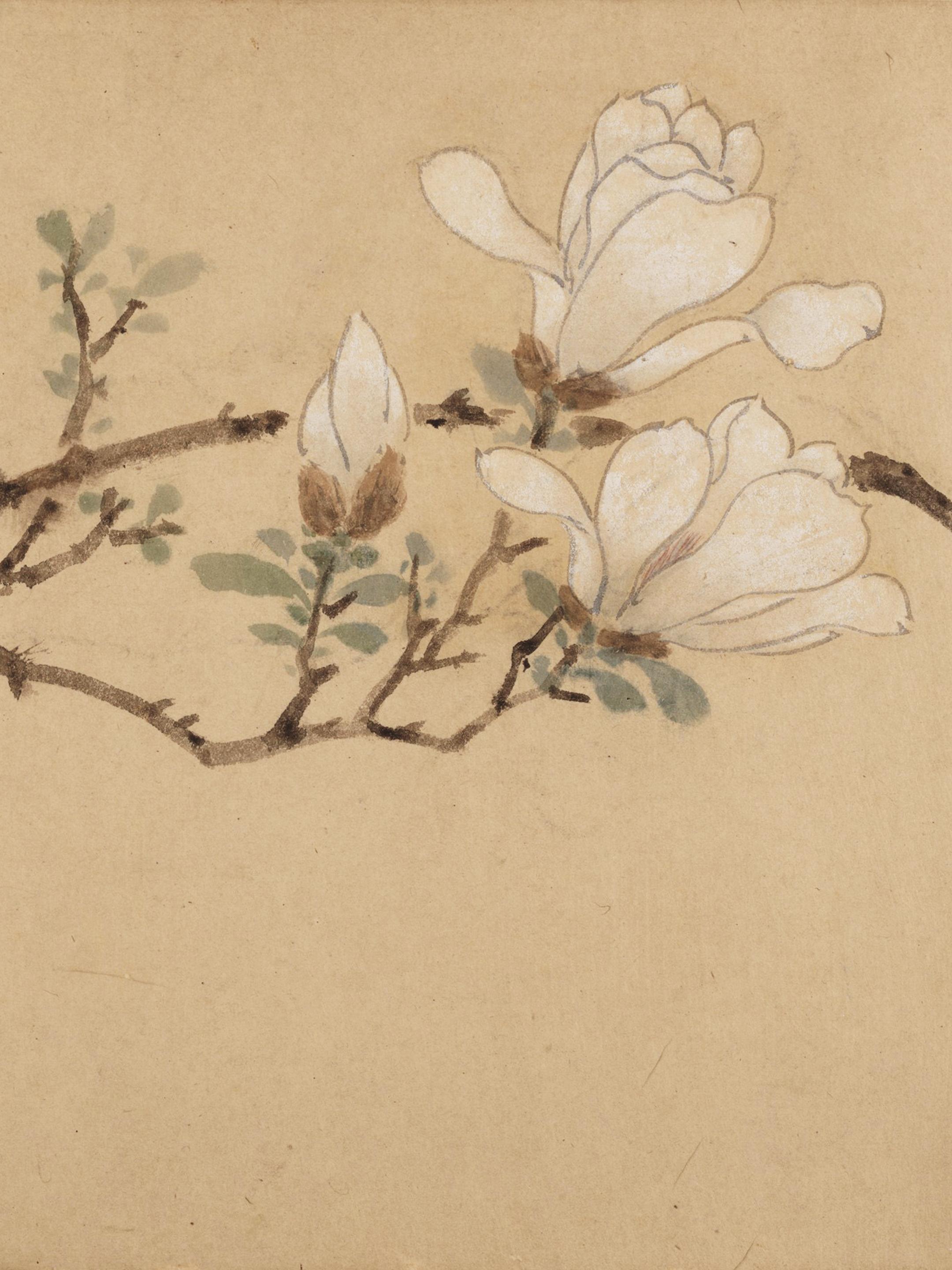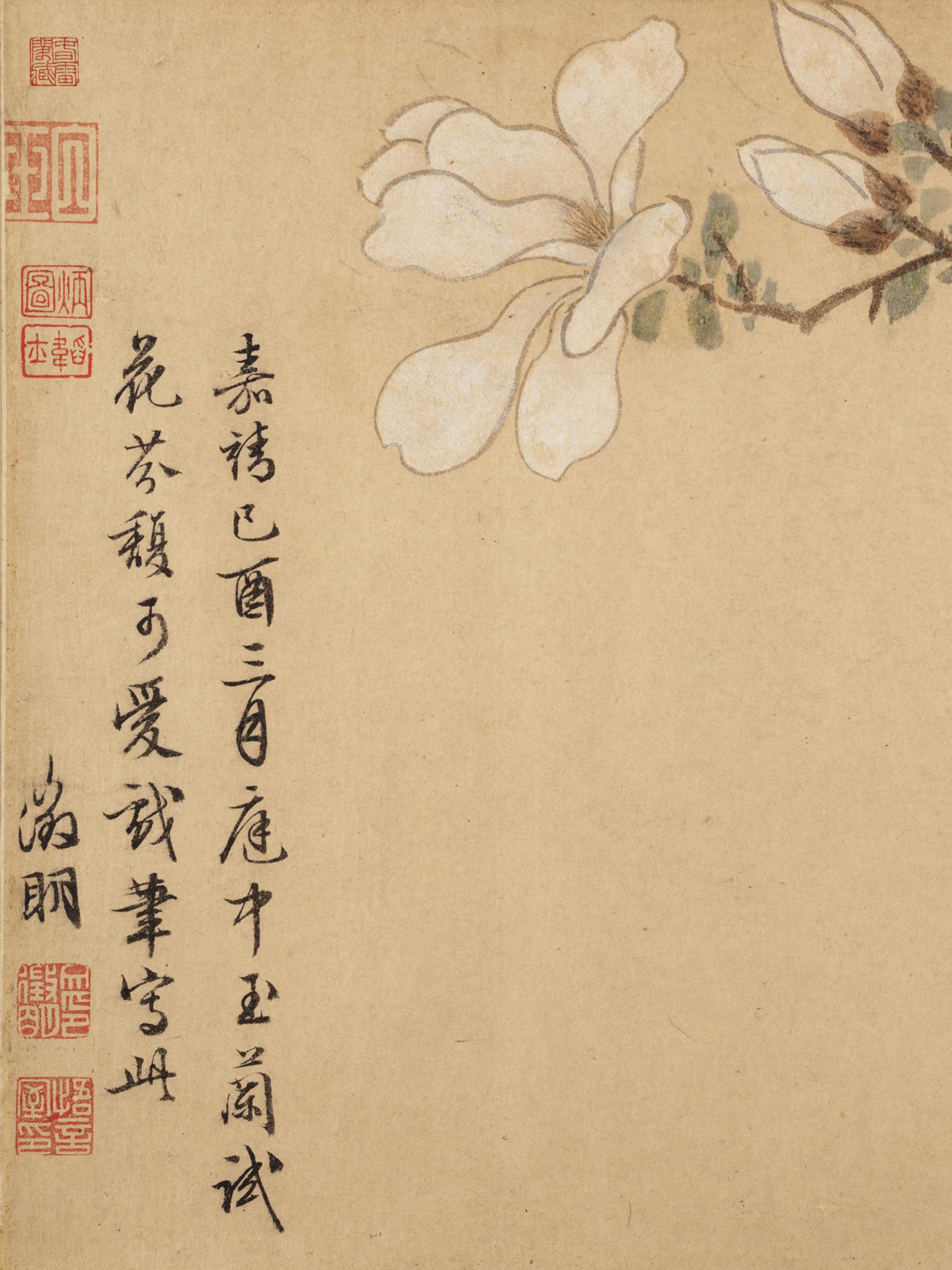 春有时尽|玉兰驻于试花之际。🌊 嘉靖己酉三月 庭中玉兰试花 芬馥可爱 戏笔写此—— 明 · 文徵明(款)