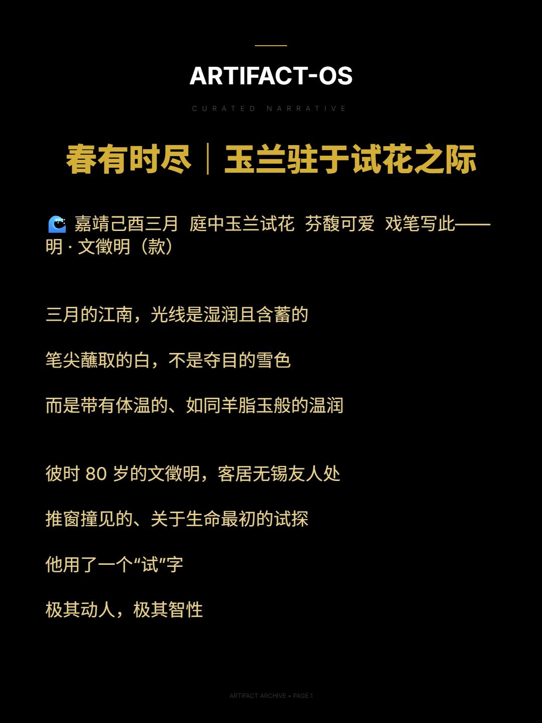 春有时尽|玉兰驻于试花之际。🌊 嘉靖己酉三月 庭中玉兰试花 芬馥...