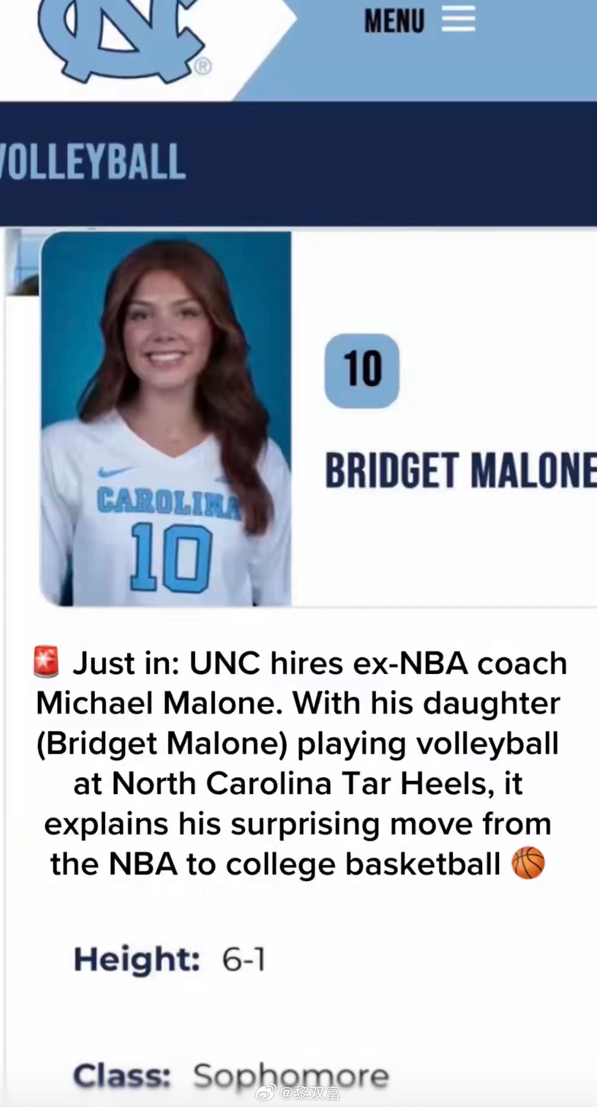 迈克尔·马龙带着媳妇和女儿出席北卡发布会,女儿目前大二,是北卡排球队一员。“这是我唯一会考虑执教的大学,其他学校的电话打来,我都不会接。”马龙和北卡的合同是6年5000万美元,833万的年薪让其成为了美国大学男篮史上第二高薪的主帅,第一是上赛季堪萨斯大学的比尔·赛尔夫(880万)。