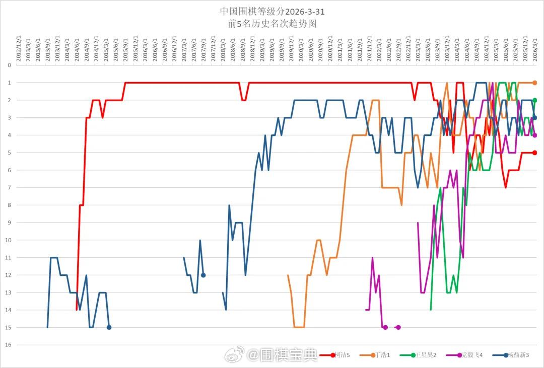 中国围棋等级分Top15(截止2026-03-31) 围棋 围棋超话