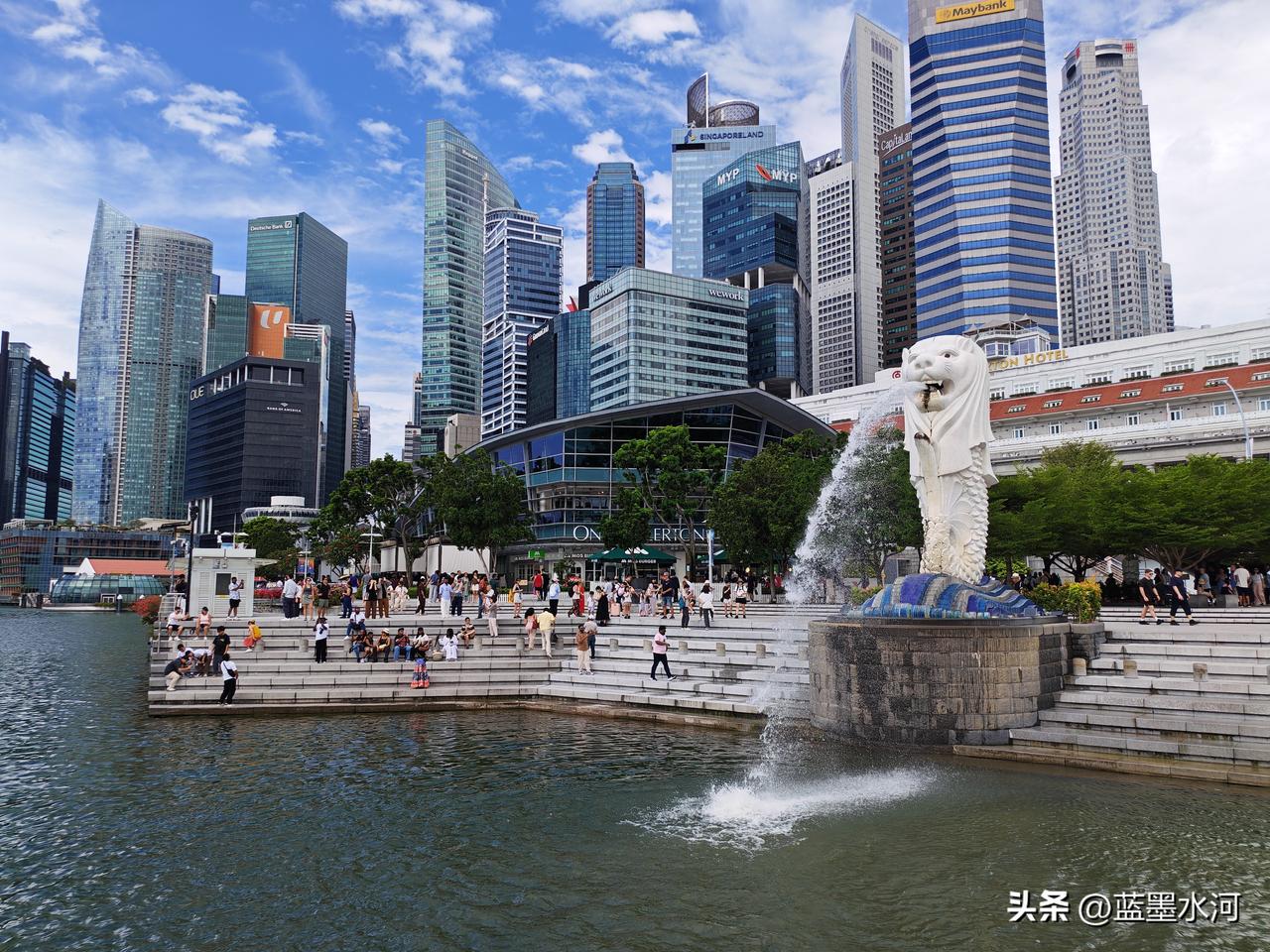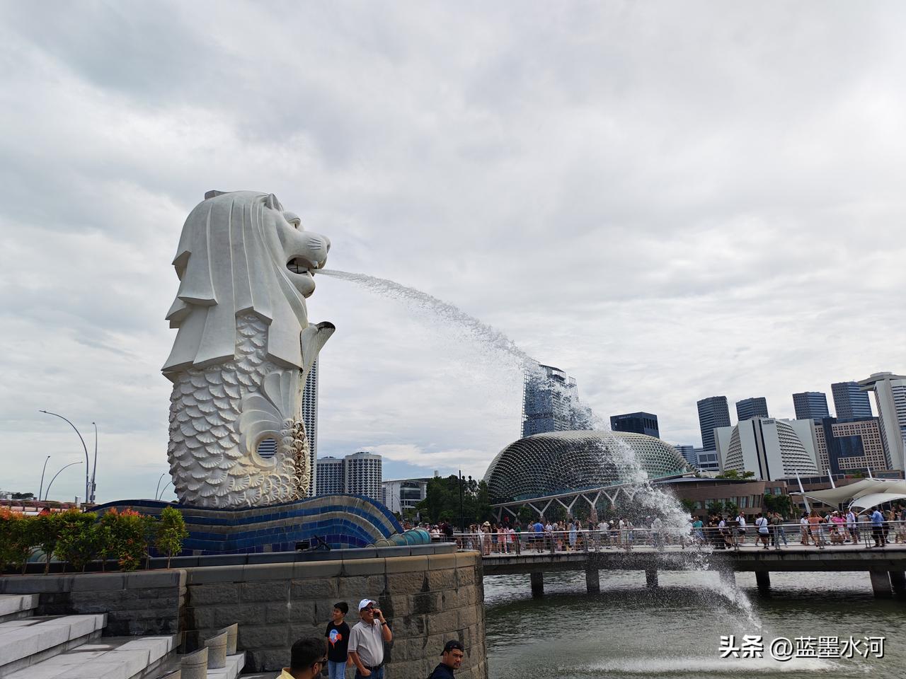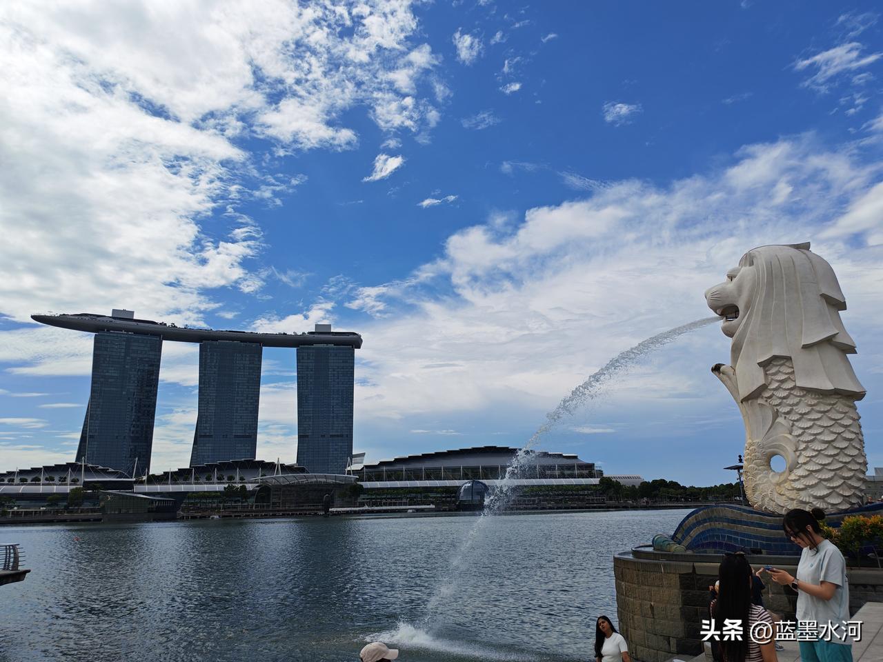 天气晴朗的今天,滨海湾畔,海风吹拂。游客们或驻足远眺金沙美景,或沿堤岸漫步闲谈,欢声笑语伴着阵阵浪花,一派悠闲热闹的景象。最热闹场景就是人人举着手机与鱼尾狮合影,定格鱼尾狮庄严、美丽和喷水难忘的瞬间。
