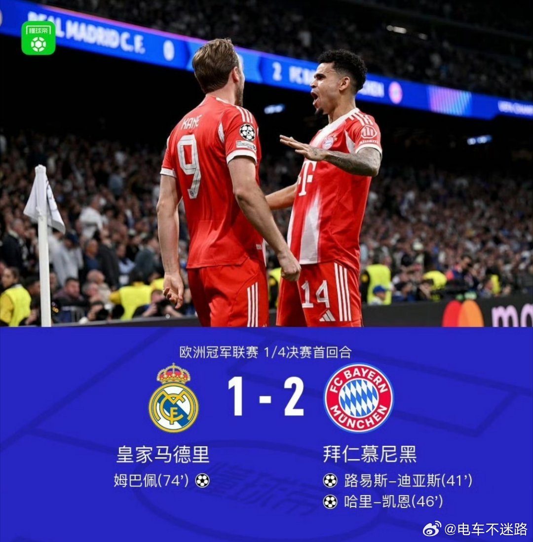 欧冠联赛拜仁2-1皇马诺伊尔全场9次扑救!当选全场最佳球员!