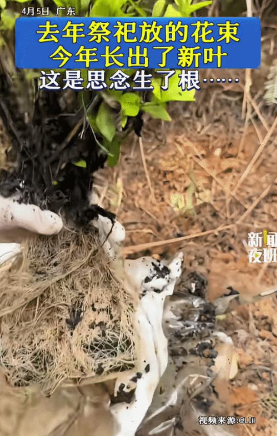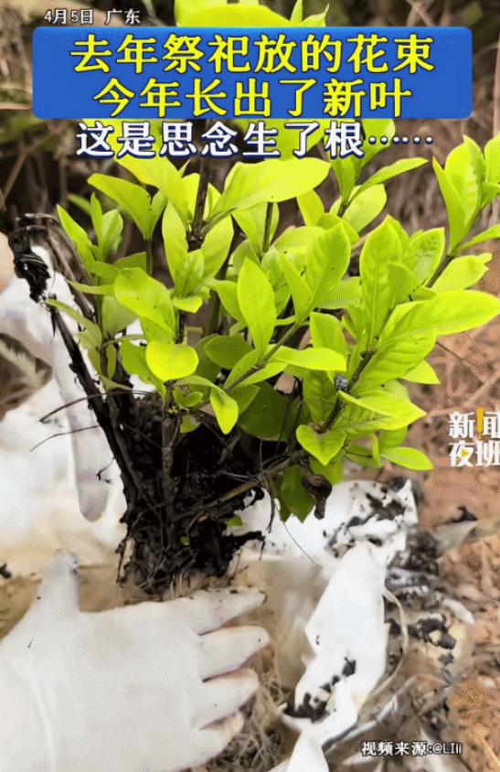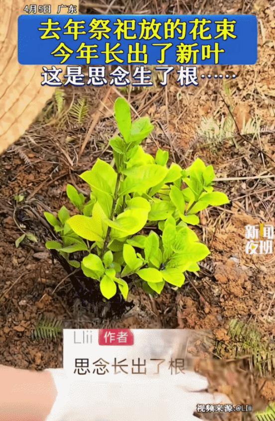 看哭了!广东,女子清明节去扫墓,突然,她发现去年放的一束花,今年长出了枝芽,网友: 枯木逢春,是思念在生长。