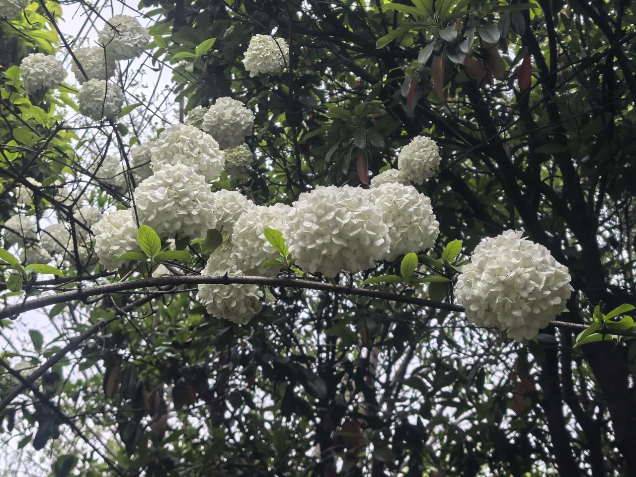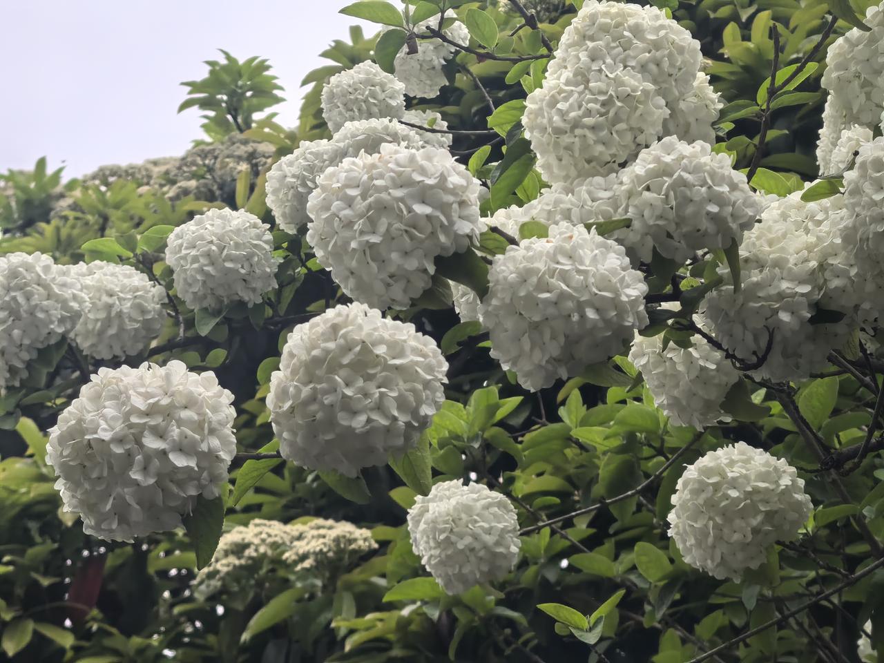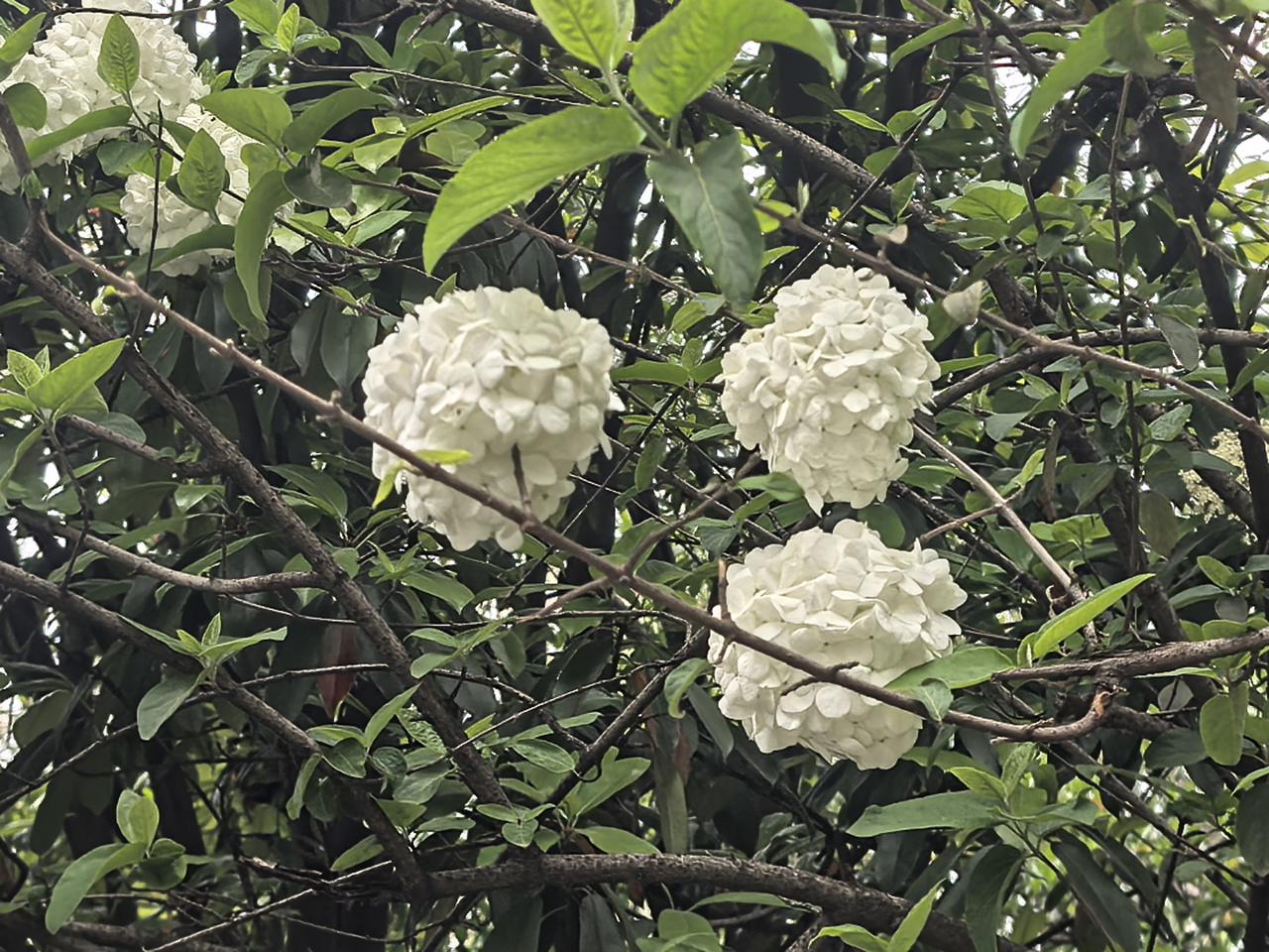 白色绣球花盛开,绿叶相映成趣,自然之美尽收眼底。🌸🌿