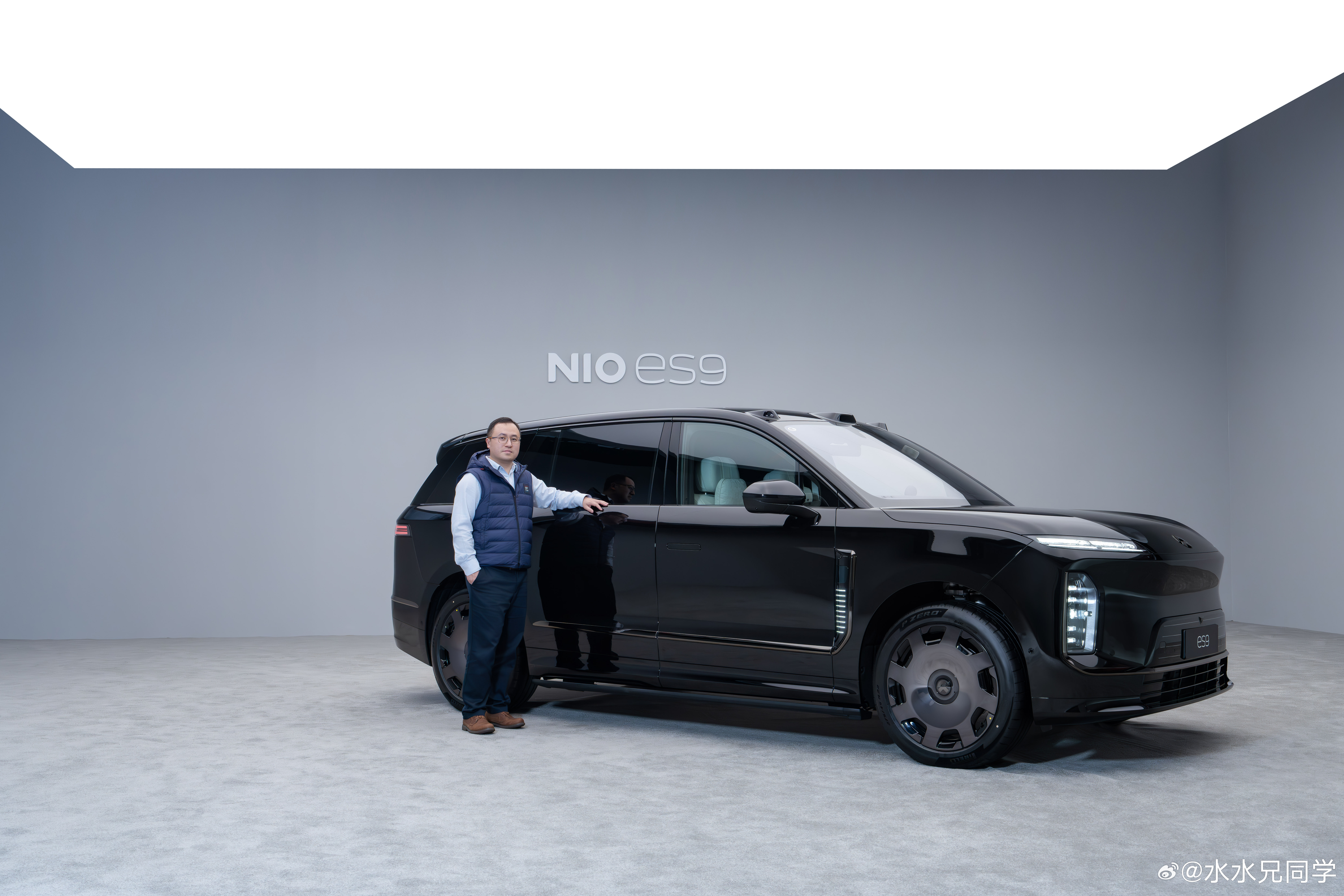 很幸运,分到了一台黑色外观,熏黑镀铬条和LOGO的黑武士版本ES9,这个大饼轮毂