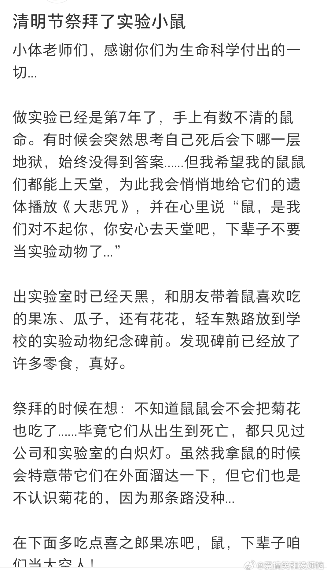清明节祭拜了实验小鼠