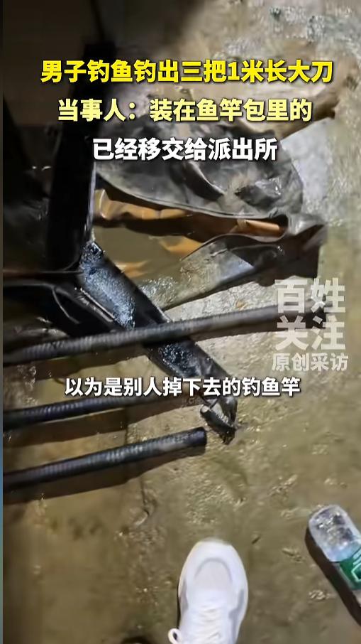 “万万没想到!”4月6日,江西上饶,一男子在河边夜钓,路亚竿抛出去后,很快就挂了底。男子很是兴奋,想着指定是上鱼了,小心翼翼收起了竿。可等他捞上来一看,根本不是鱼,而是个装鱼竿的包。打开一看,里面的东西让他惊呆了! 网上一直有个梗,说钓鱼佬除了鱼什么都能钓到。这是因为,有太多空军的钓鱼佬,在钓鱼时,钓上了奇奇怪怪的东西。 据媒体报道,事发当晚,周先生正在夜钓,他找好了位置,拿出家伙事儿就钓了起来。很快,这一竿抛出去后,就挂了底。男子兴奋极了,这么快就上鱼了。可拉着拉着,他感觉不对劲,这钓上来的更像是个死物。 没办法,他还是小心翼翼的把线收了回来,拉上来一看,原来是个装钓竿的包,也不知是谁的,竟然掉在了河里。打开一看,他被吓了一跳。里面可不是鱼竿,而是三把大砍刀。 他把三把刀摆出来一看,每把都一米多长,上面还都开了血槽。周先生不敢大意,害怕这些是凶器,赶忙打电话报了警,让派出所来人把东西给取走了。 网友看后表示,估计是黑社会怕被查,偷偷把刀包好丢了进去,丢的这么偏,就是怕被人发现,这可倒好,直接被钓鱼佬给钓上来了。希望他们能看到新闻,早早的去自首吧! 信息来源:《男子钓鱼钓出三把1米长大刀,当事人:装在鱼竿包里的。》百姓关注