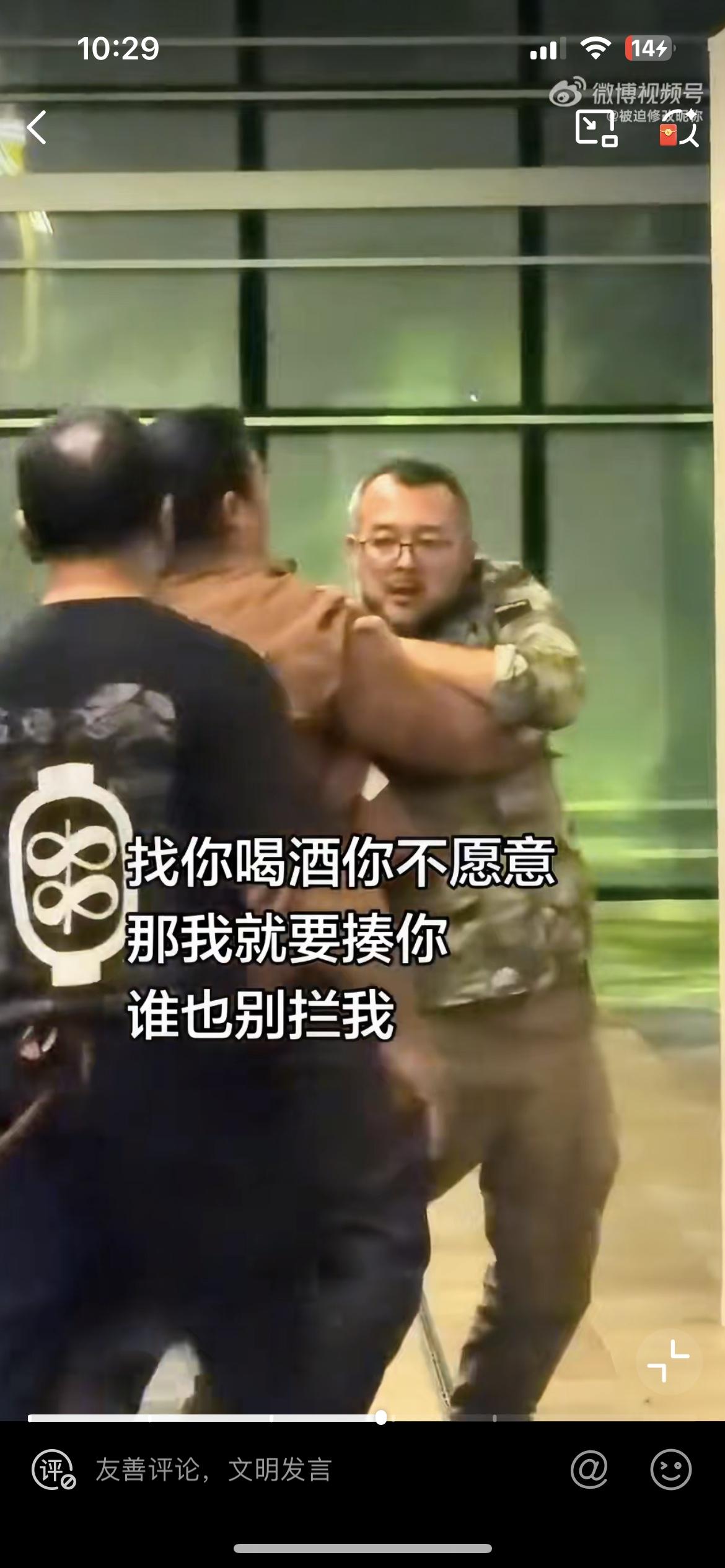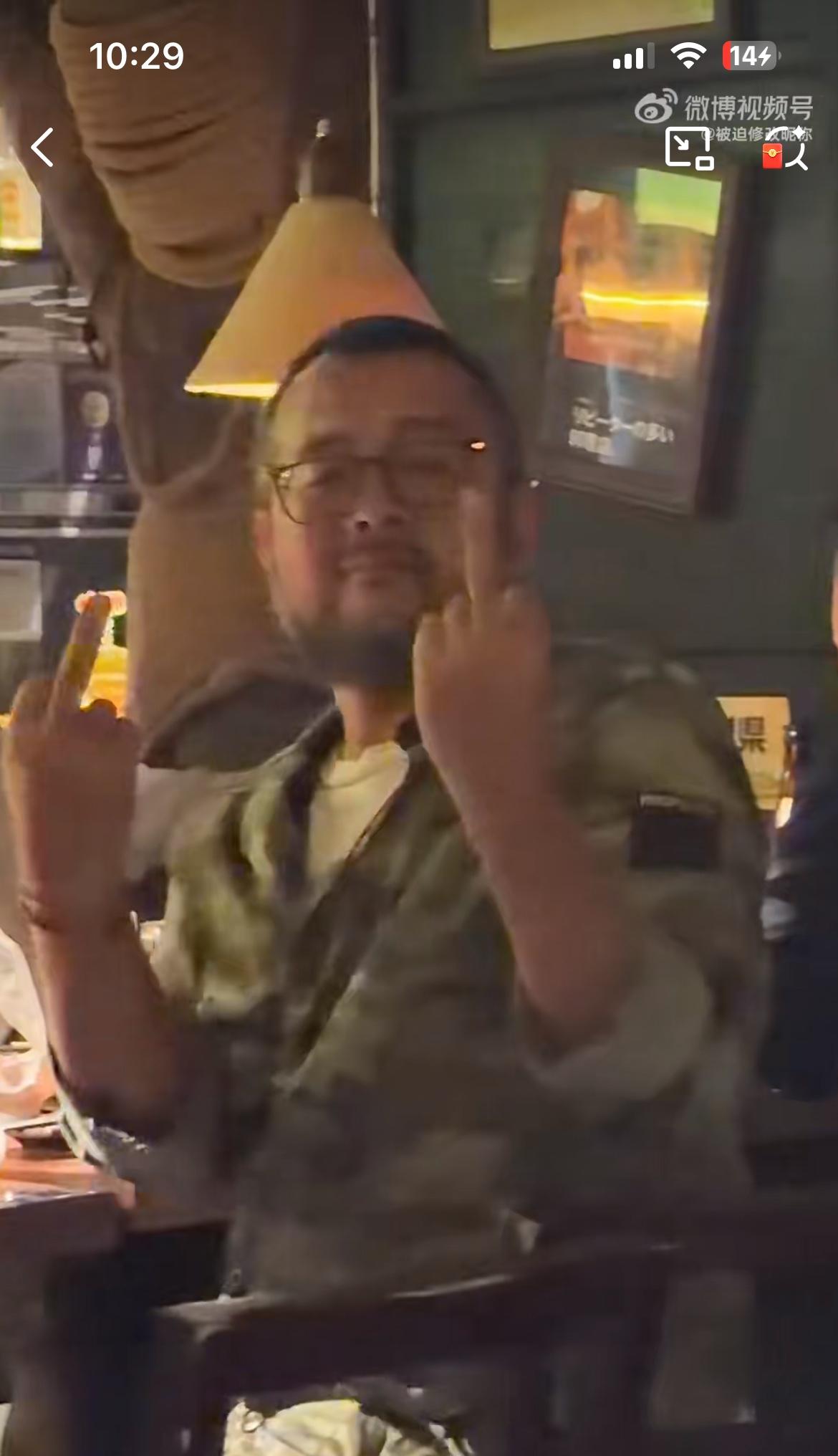 图中的男子想邀请邻桌的女孩一起喝酒,遭到女孩的嘲笑,男子竖中指发泄不满。没想到男子借着酒劲继续骚扰这几名女生,女生也不是软柿子,直接言语回击,说他满脸络腮胡子,一脸的老相,谁愿意和你喝酒?一句话让这名男子破防了,使命要冲过去,不知道是要打这打这几名女生,还是要和她们争个高低。还好和他一起喝酒的几个朋友脑子比较清醒,使命的把他给拉住了。后面不知道是谁报警,这名男子也泄气了,顺势躺倒在地装睡。