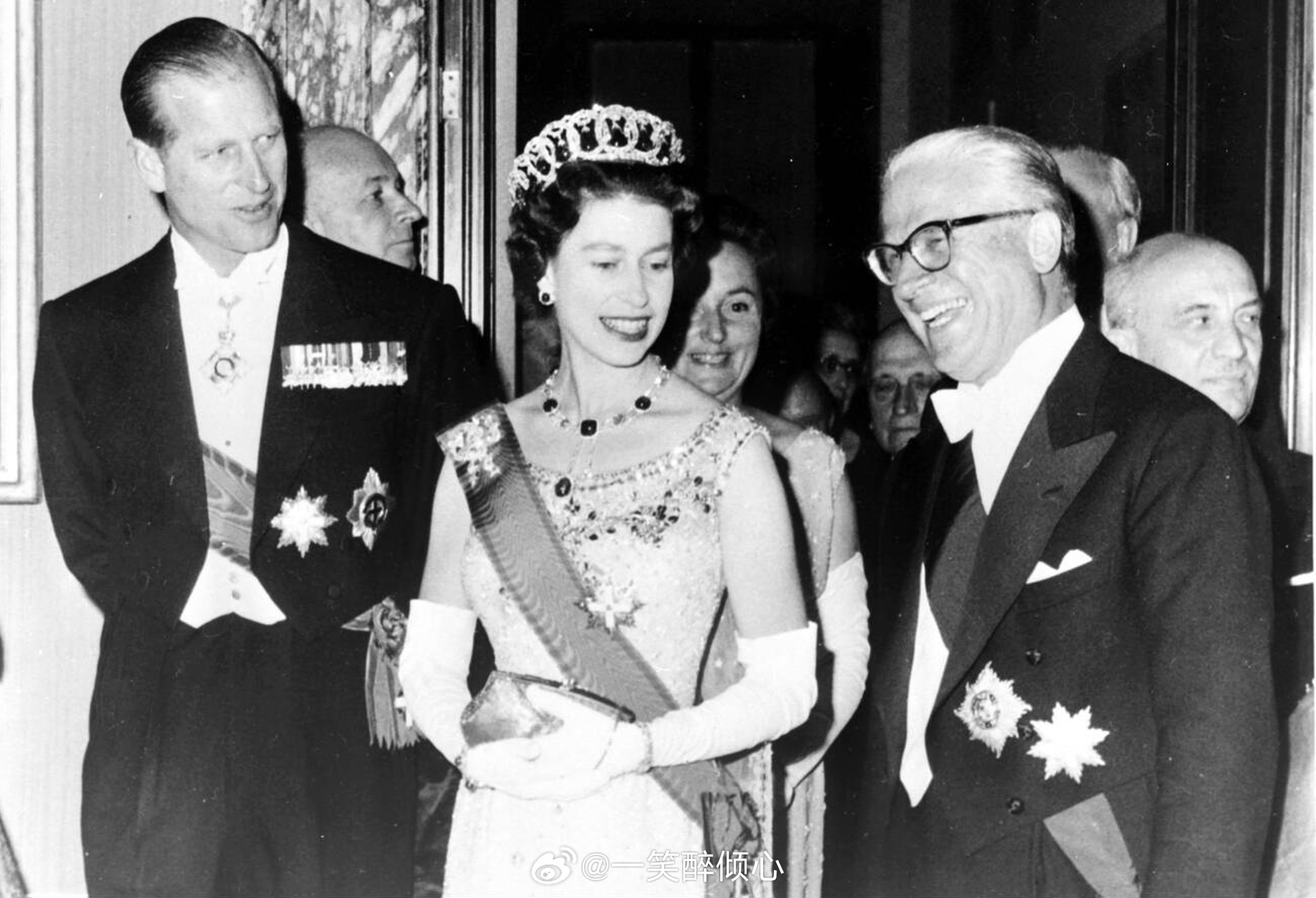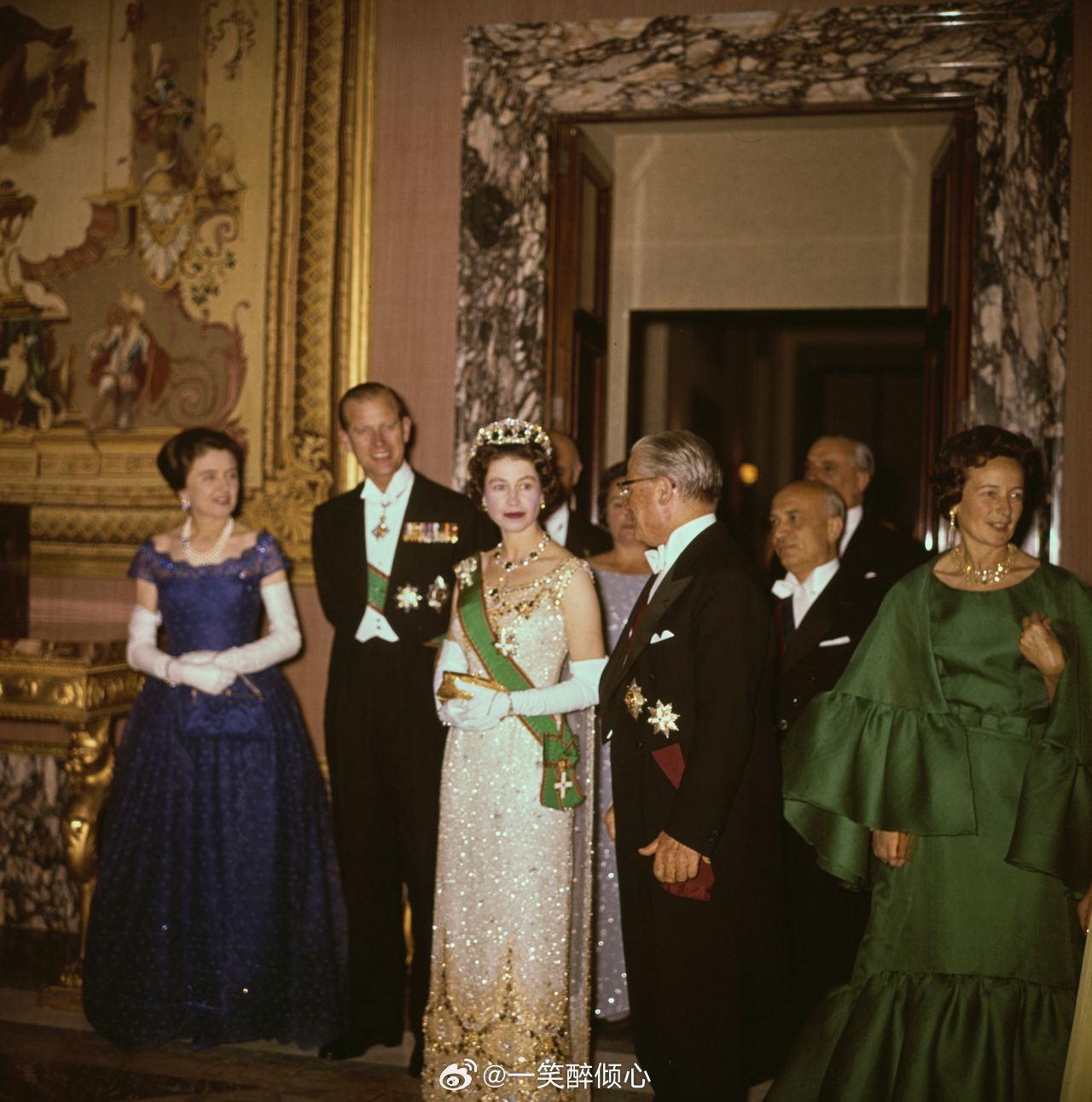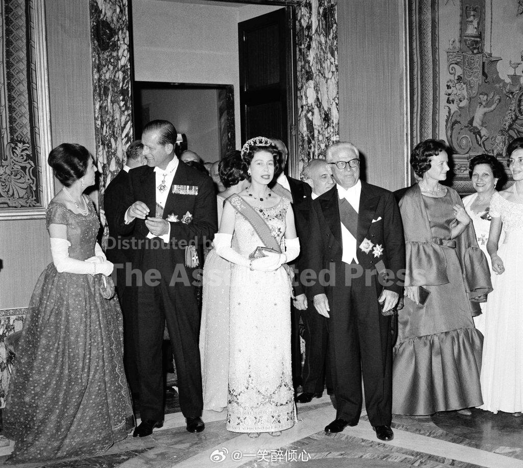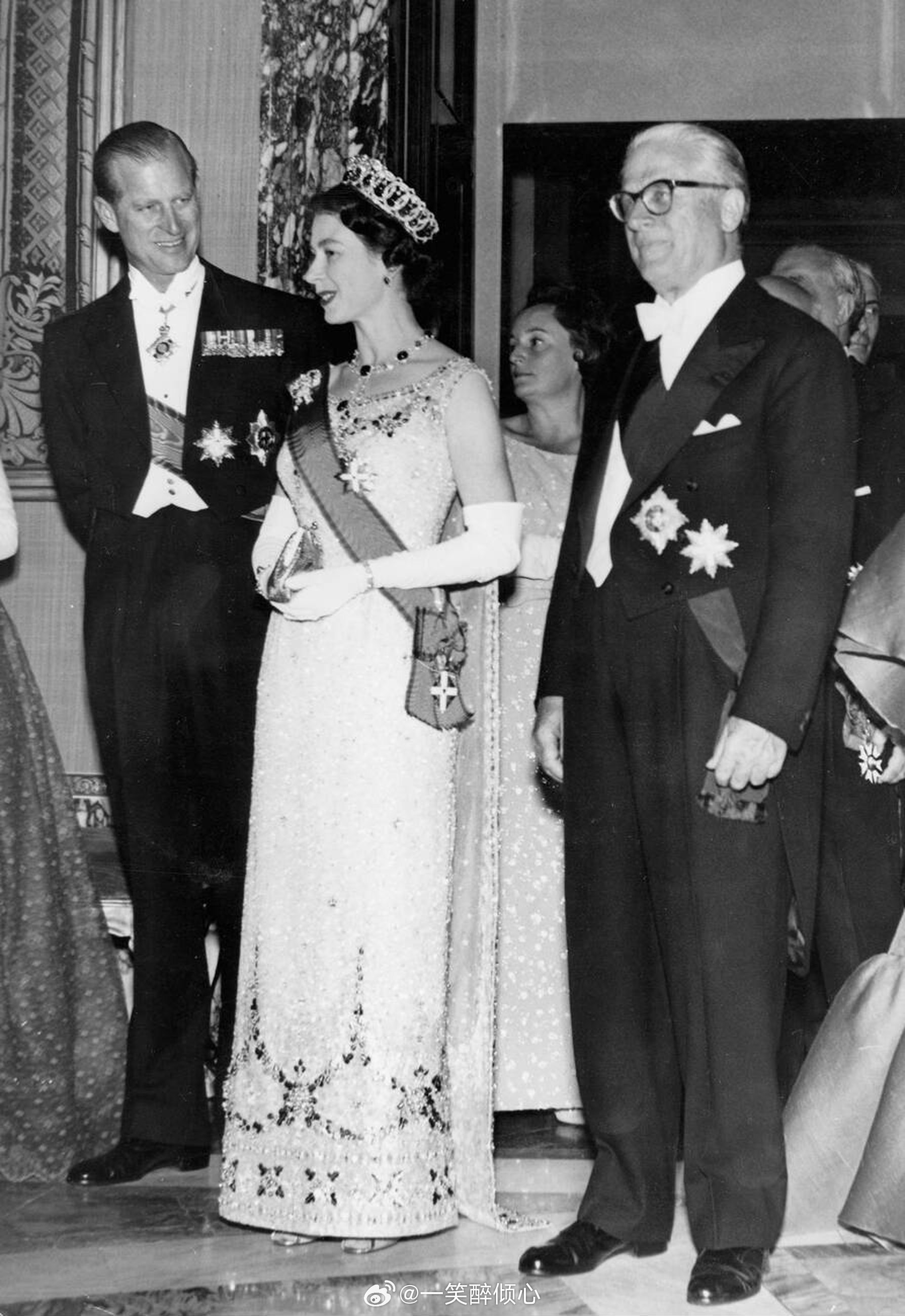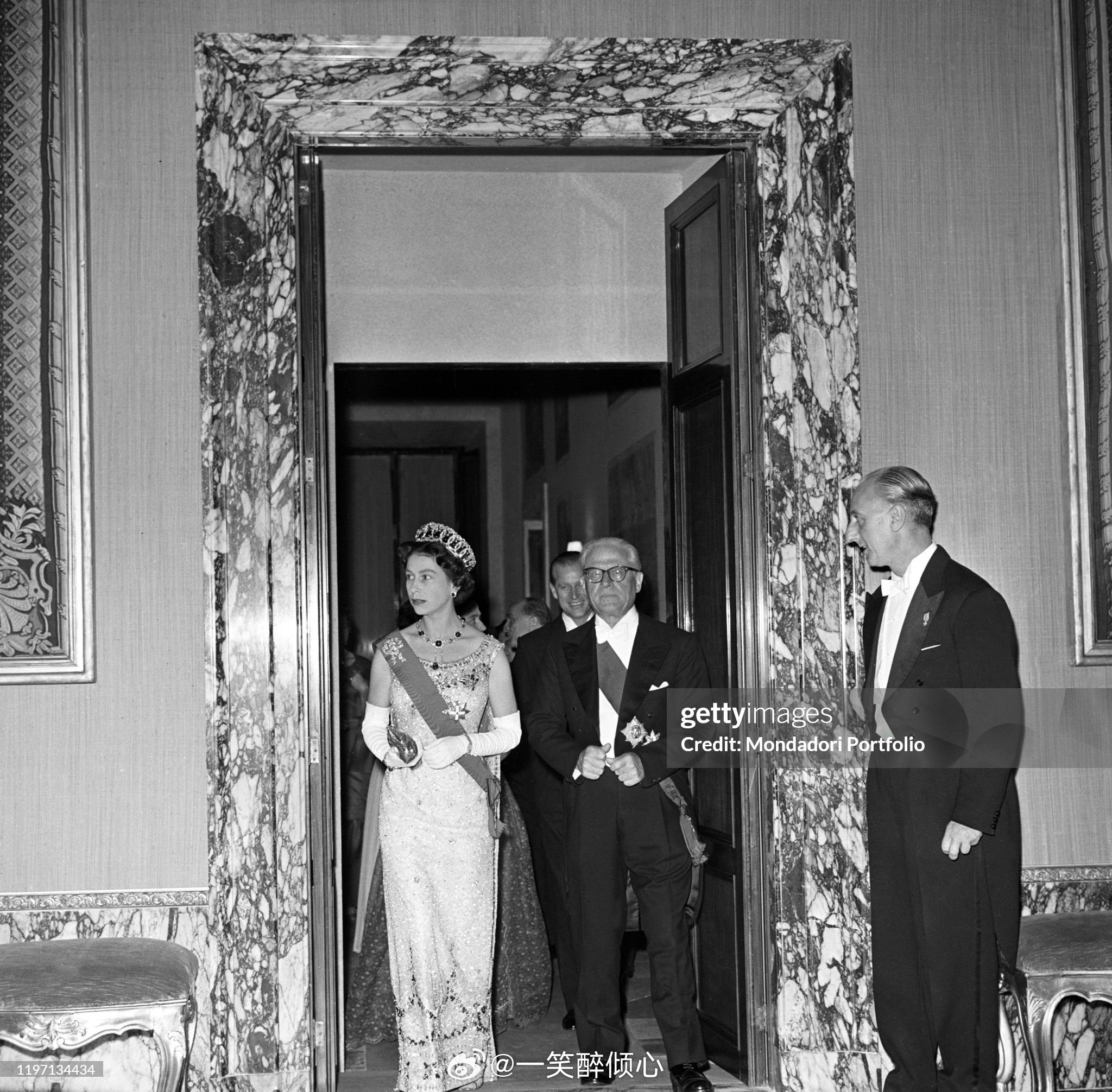 1961年5月2日,伊丽莎白二世女王和爱丁堡公爵菲利普亲王在意大利罗马的奎里纳莱宫参加意大利总统Giovanni Gronchi主持的国宴🇮🇹她那时候穿的无袖亮片晚礼服是由Norman Hartnell爵士设计的。