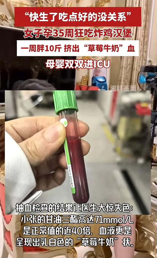 “悲剧还是发生了!”浙江,一女子怀孕时,患了妊娠期糖尿病,所以严格控制饮食,到了孕35周,她心想反正快要生了,稍微吃点好的没关系,于是她开始大吃大喝,毫无顾忌,结果一周后,女子腹痛难忍,抽血时血液都是乳白色,最后母子双双进ICU!