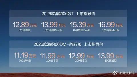 4月2日,比亚迪海洋网用一场双车上市发布会,给纠结“既要又要”的消费者递上了一份标准答案——2026款海豹06GT与2026款海豹06DM-i旅行版同步登场,前者售价12.89万元至16.99万元,后者售价11.19万元至13.99万元。这不是一次简单的年度改款,而是比亚迪在年轻化与家庭化两条赛道上同时投下的重磅炸弹:一边是用闪充技术和第二代刀片电池重新定义纯电GT门槛的“高能潮趣座驾”,另一边则是用300公里纯电续航填补10-15万级旅行车市场空白的“全球首款超混旅行车”。比亚迪海洋网