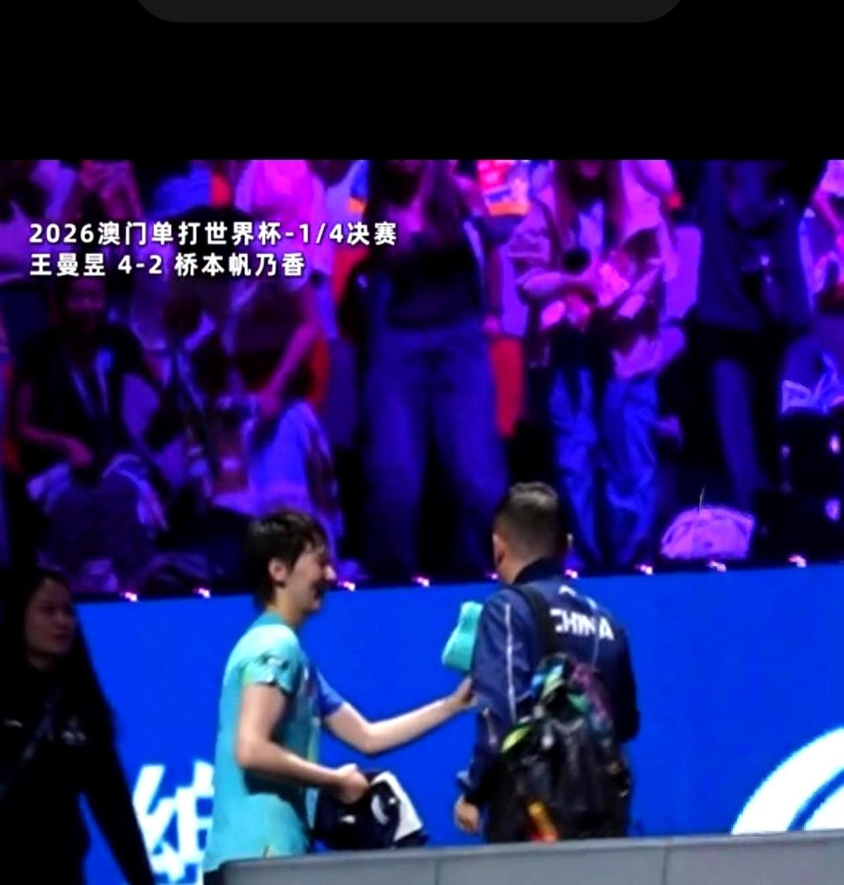 但最触动我的,是赛后一个小细节。王曼昱累得没力气把毛巾扔给观众,直接交给了马琳教练。马琳教练接过毛巾,笑着就帮她抛向了看台。