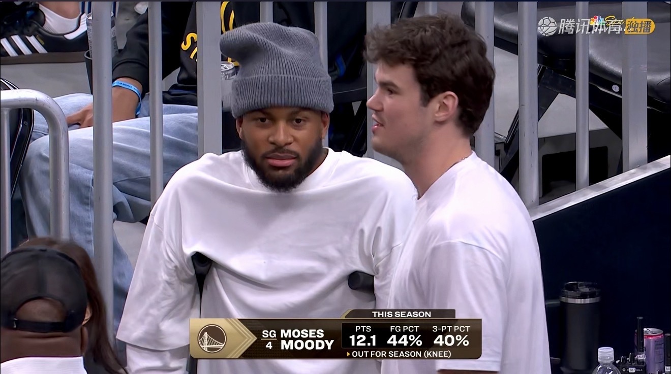 金州勇士 穆迪场边拄拐和队友聊天