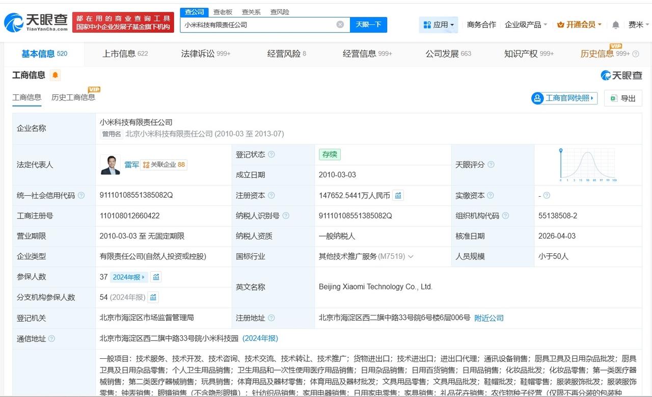 小米申请注册YU7 GT商标 天眼查知识产权信息显示,近日,小米科技有限责任公司申请注册多枚“XIAOMI YU7 GT”商标,国际分类包括运输工具、珠宝钟表等,当前商标状态均为等待实质审查。 小米科技有限责任公司成立于2010年3月,法定代表人为雷军,注册资本约14.8亿人民币,经营范围包括通讯设备销售、厨具卫具及日用杂品批发、厨具卫具及日用杂品零售等,由雷军、刘德共同持股。 公开资料显示,小米YU7 GT是小米汽车计划推出的一款高性能纯电SUV。 天眼查信息: