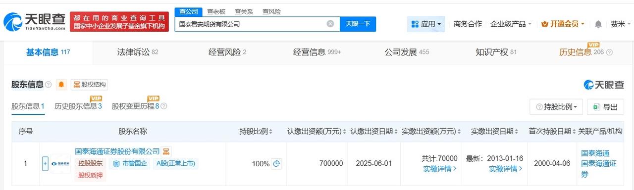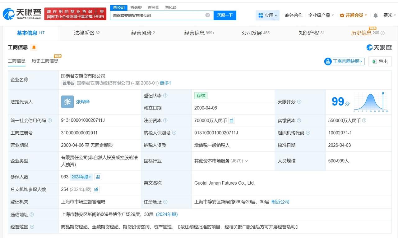 国泰君安期货公司增资至70亿 增幅约17% 天眼查App显示,近日,国泰君安期货有限公司发生工商变更,注册资本由60亿人民币增至70亿人民币,增幅约17%。 该公司成立于2000年4月,法定代表人为张烨烨,经营范围为商品期货经纪、金融期货经纪、期货投资咨询、资产管理,由国泰海通(601211)全资持股。 天眼查信息: