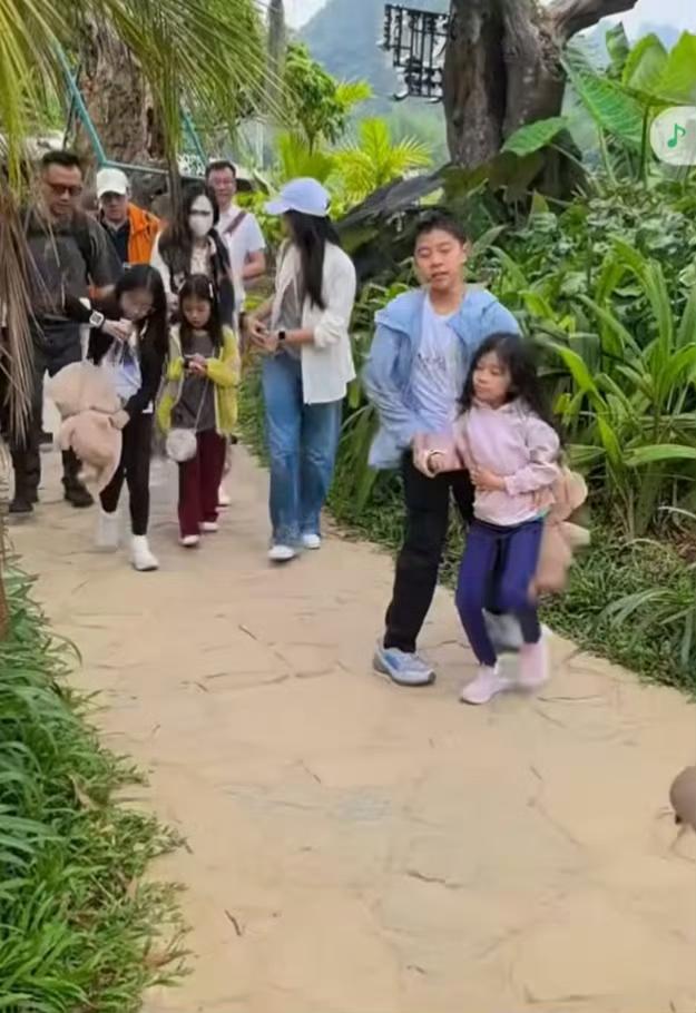 霍启刚带仨娃游广西,11岁霍中曦抱7岁妹妹走路,9岁霍中妍像朱玲玲 霍启刚回应