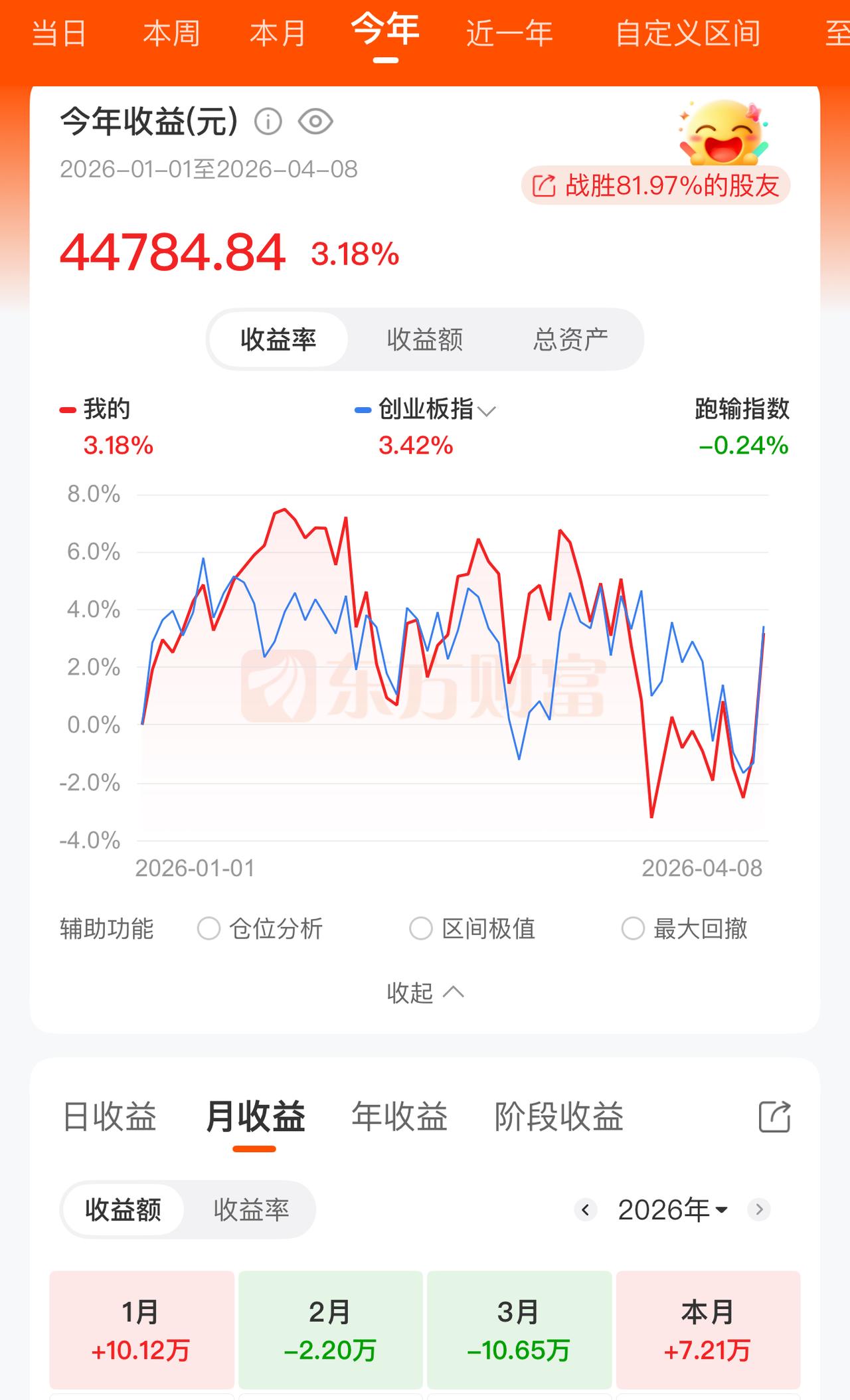 出去旅行的近两个月,虽然也偶尔看盘,但没精力操作,光三月就亏损十万多。