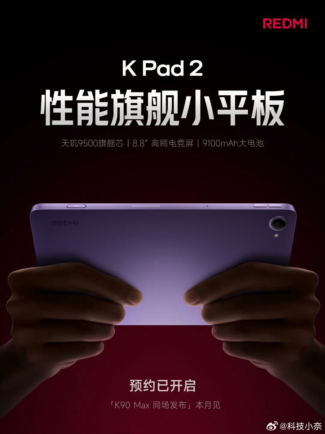 REDMI K Pad 2来了!8.8英寸165Hz高刷、天玑9500、9100