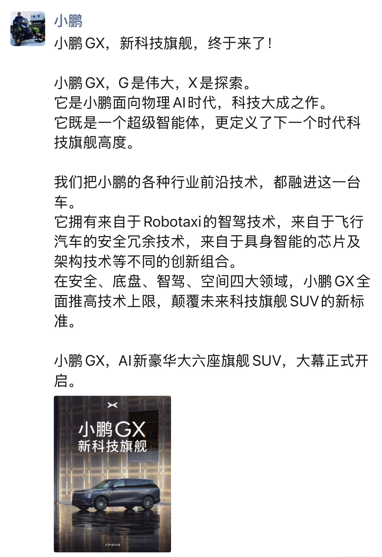 新科技旗舰小鹏GX来了大师兄刚刚预告了小鹏2026年首款全新车型——小鹏GX