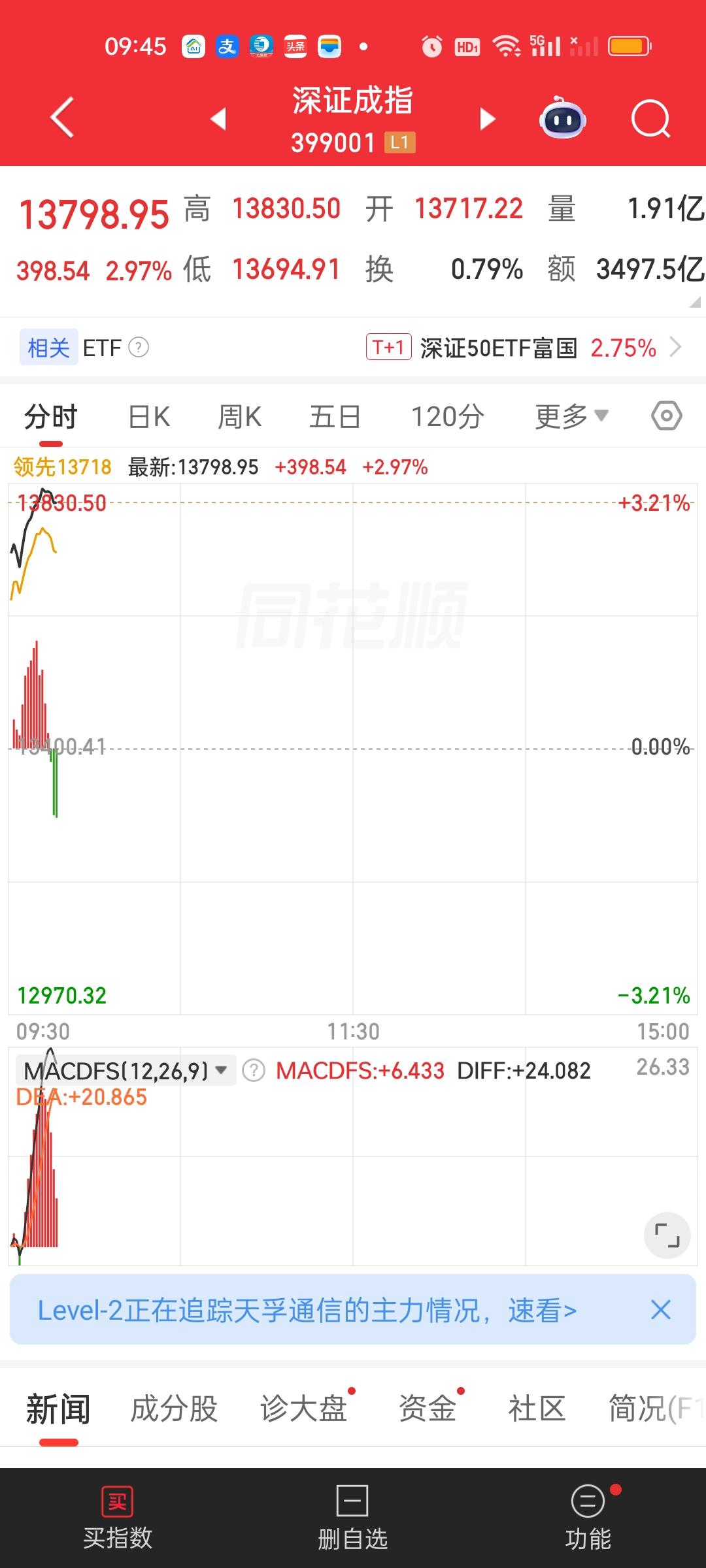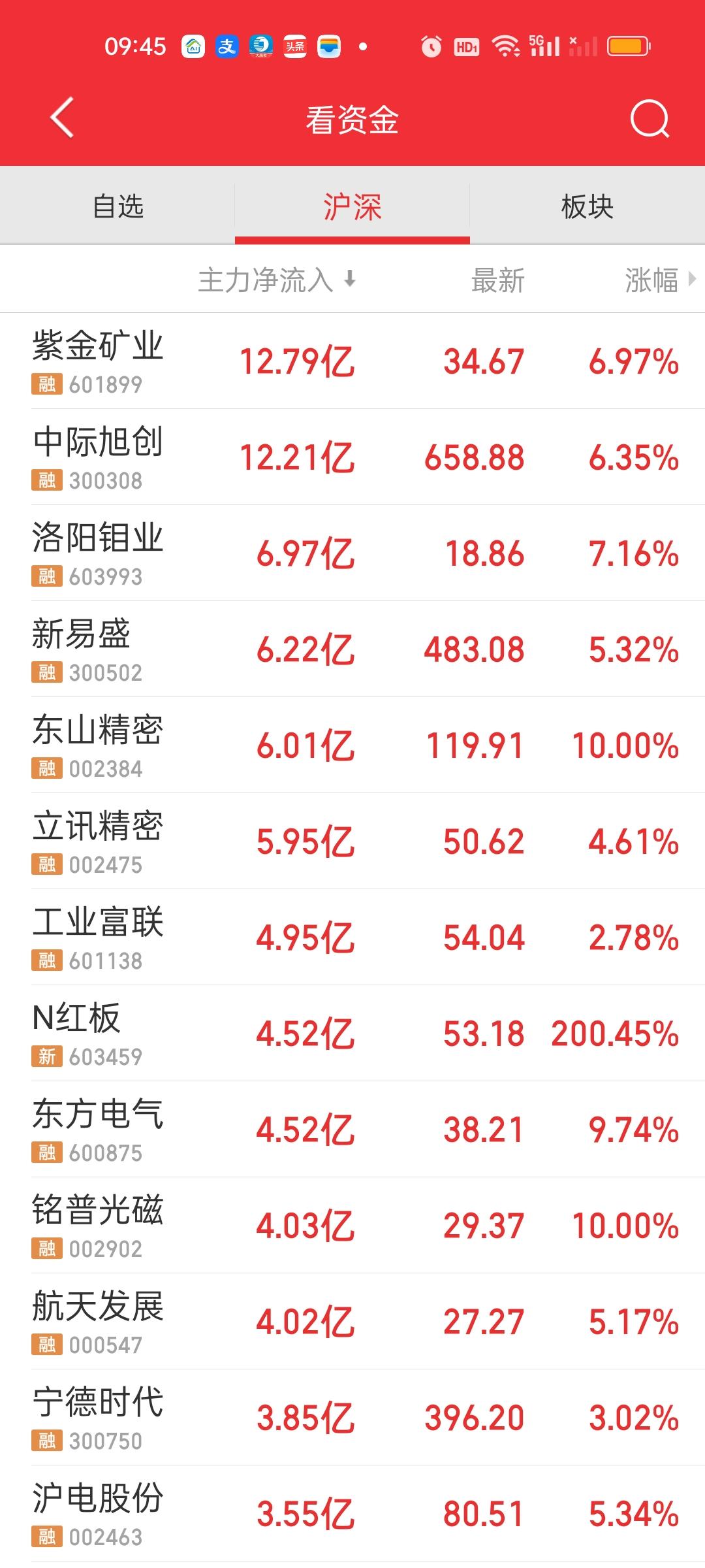 开盘十多分钟就放量3000亿。大盘资金净流入超350亿,一个一个像捡钱一样跑步进