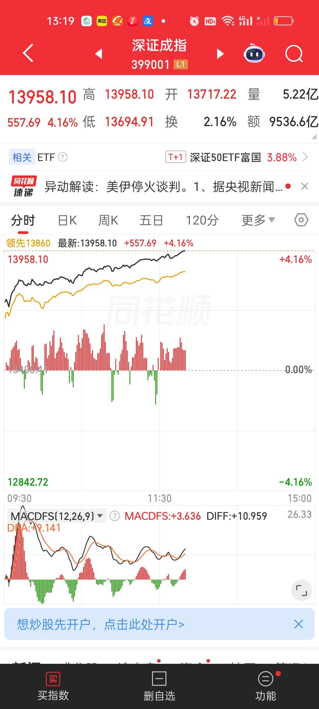 下午刚开盘,成交量已经超过昨天全天的量了。昨天全天16235亿,现在已经接近18000亿了,昨天和今天一样都是100多家涨停10多家跌停,涨跌停家数差不多,但因为成交量差了近6000亿,赚钱效应完全不同。