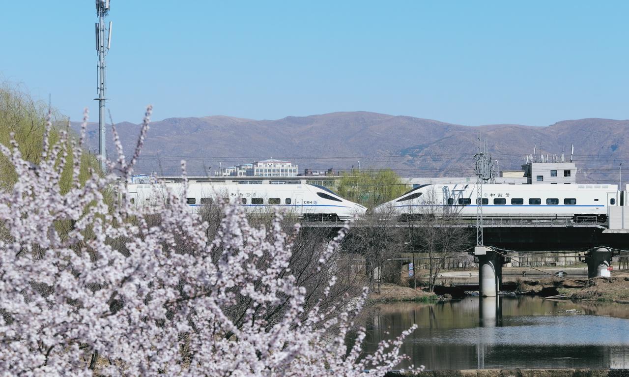 回民区的“高铁桃花映青山”