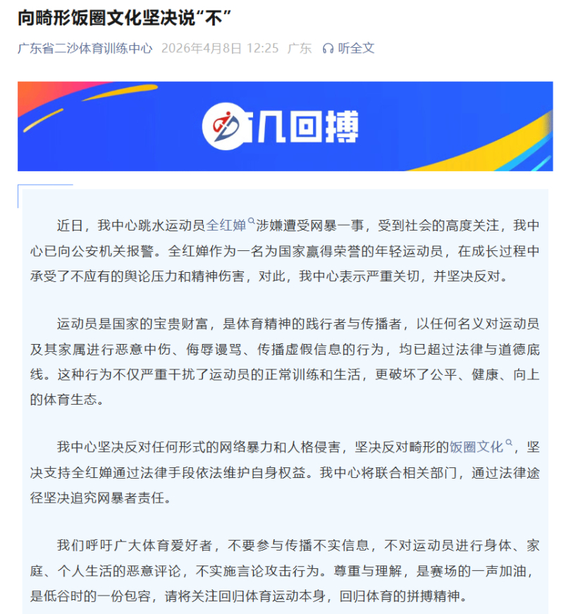 全红婵涉嫌遭受网暴已报警